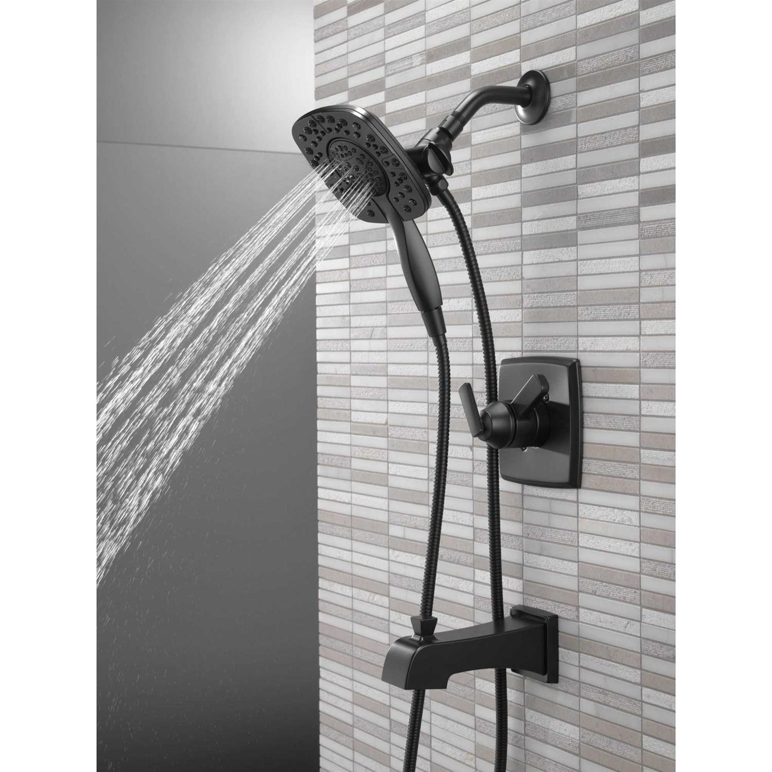 Delta Faucets T17464 BL I Ashlyn Monitor 17 Series Shower Trim With In2Ition Two In One Shower in Matte Black The sleek, angular lines and soft edges of the Ashlyn bath collection create a modern appeal at an attractive price. The In2ition shower features a detachable hand shower, which can run separately from or simultaneously with the shower head, giving you the warmth and flexibility of two streams of water at once. Enjoy the comfort of water streaming from the shower head position, while the hand shower offers the flexibility to accomplish other tasks, such as bathing your children; washing your pet; and keeping your shower clean. When you’re finished, simply slip the hand shower back into place on the shower head. The In2ition 2 in 1 Shower is a quick and easy way to upgrade your shower. Simply remove your current showerhead and replace with the In2ition shower. There’s no need to go behind the wall to enhance your everyday shower.