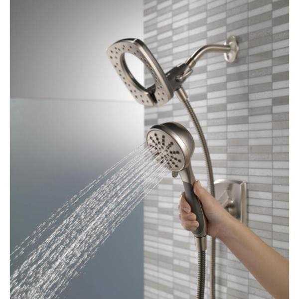 Delta T17264-I Features: Covered under Delta’s limited lifetime faucet and finish warranty Shower Package Includes: Valve trim, In2ition shower head/hand shower and shower arm Trim constructed of brass? ensuring durability and providing aesthetic appeal Hand shower snuggly docks into the shower head Multiple (4) spray functions Dual function cartridge – separate volume and temperature controls Monitor pressure balancing valve cartridge with scald guard ADA compliant – complies with the standards set forth by the Americans with Disabilities Act for shower systems Rough-in valve not included? when adding to cart valve options will be presented Specifications: Model 58498 In2ition 2-in-1 shower 120-degree swing temperature dial allows for pin-point water control Showerhead Height: 10-3/8” Showerhead Width: 5-1/2” Escutcheon Diameter: 6” Installation Type: Wall Mounted Number of Handles: 2 Flow rate: 1.75 gallons-per-minute Why Buy Delta T17264-I From Us: We are a Delta Preferred Authorized Online Dealer for Guaranteed Warranty Coverage Customer Care Experts Available 7 Days a Week to Serve You Before and After Purchase A Showroom Experience from the Comfort of Your Home or Office Delta T17264-I Technologies / Benefits: Monitor: Delta Monitor showers feature pressure balance valve cartridges, which protect against sudden temperature or pressure changes to keep the water in the shower within a safe +/- 3? F. Monitor valves also feature a high-temperature limit stop that can be adjusted to suit your shower needs. MultiChoice Valve: Flexibility is the big benefit of the MultiChoice Universal Valve. Once the MultiChoice rough is installed, future shower function upgrades or style changes can easily be made without altering the plumbing behind the wall. Independent Volume Control: Dual-control valve trims are what separate Delta showers from the competition. The top, smaller handle controls temperature, while the bottom, larger dial controls the water volume (flow rate). The distinct advantage to this is that you can set the temperature control to a temperature you like, and then leave it, turning the shower on and off each time with the volume control. Youll never have to fuss with the temperature again. Touch Clean: Only Delta offers faucets equipped with Touch Clean soft, rubber nubbins (spray holes) that allow you to easily wipe away calcium and lime build-up with the touch of a finger. This is particularly helpful for areas with hard water. In2ition 2-in-1 Hand Showers: Delta In2ition showers provide the flexibility of a hand shower without the extra upfront costs or lost ease-of-use. With a simple flip of the diverter lever, the detachable hand shower can be run separate from, or simultaneously with, the shower head. In2ition showers also offer multiple spray settings, including a pause feature which helps you conserve water. Color: brilliance stainless. Gender: unisex.