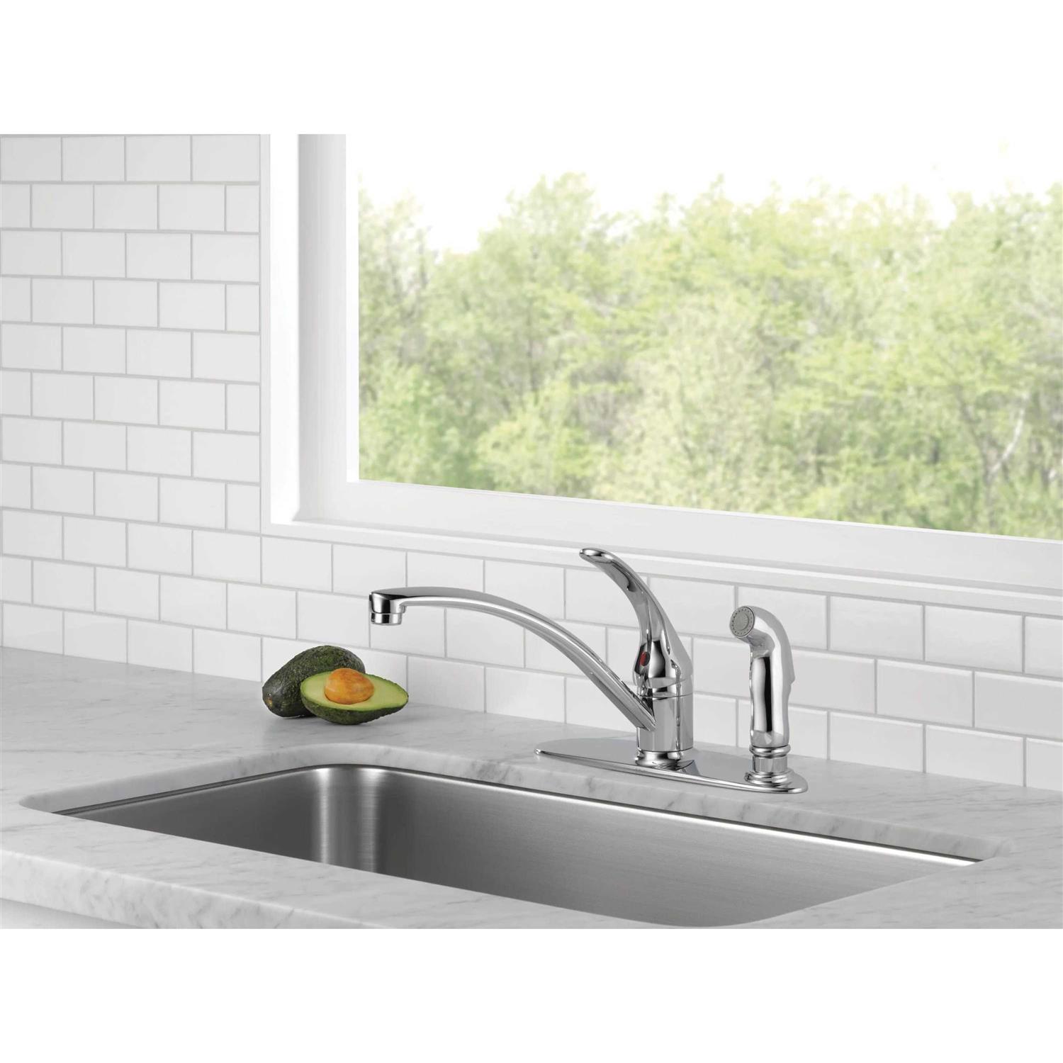 Delta B3310lf Foundations Single Handle Kitchen Faucet with Integral Spray – Chrome
