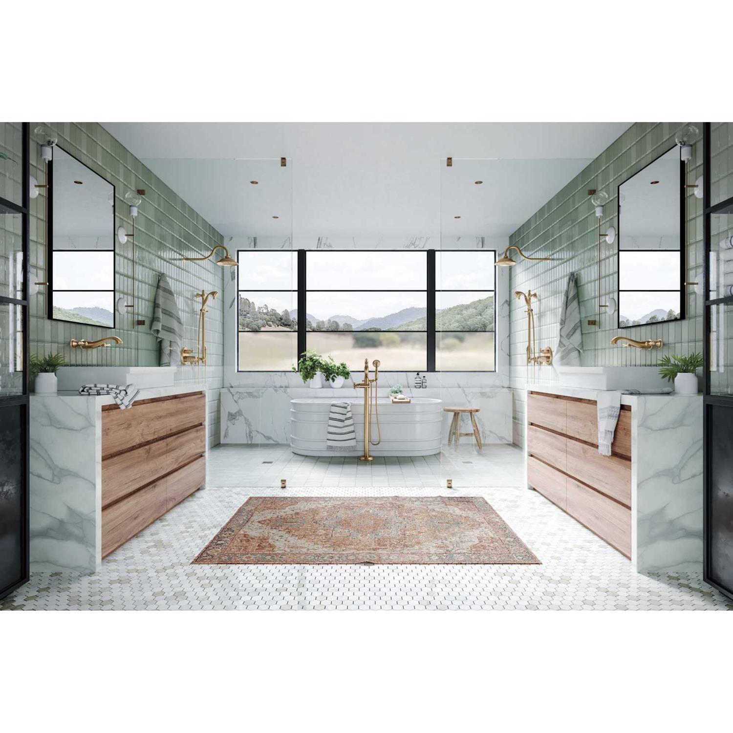 Two Handle Wall Mount 3 in. Lavatory Faucet Trim.3-hole 8 in. wall installation Less pop-up Wall-Mounted for an upscale look and more streamlined vanity space Trim kit only, must purchase rough-in kit separately ADA Compliant. Depth: 9.56 in. Height: 3 in. Spout Height: 8.78 in. Weight: 3.6 lbs. Width: 7.75 in.