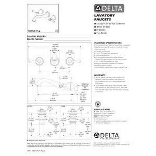 Delta Cassidy Two Handle Wall Mount Bathroom Faucet Trim T3597LF