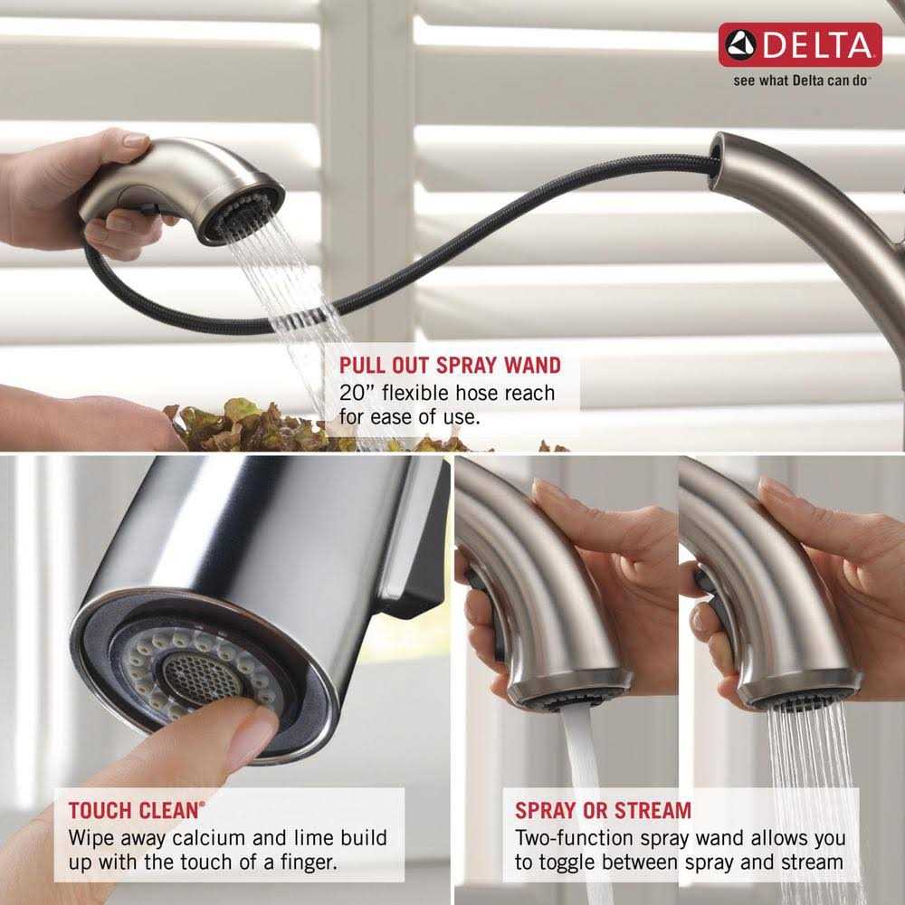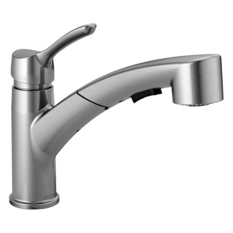 Delta Faucet 4140-TP-DST Collins Chrome Single Handle Pull-Out Kitchen – Tract Pack