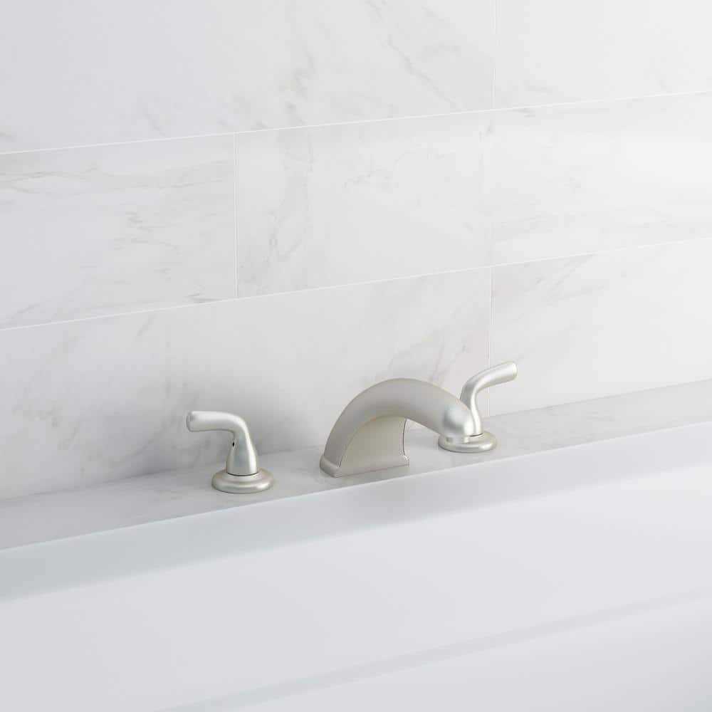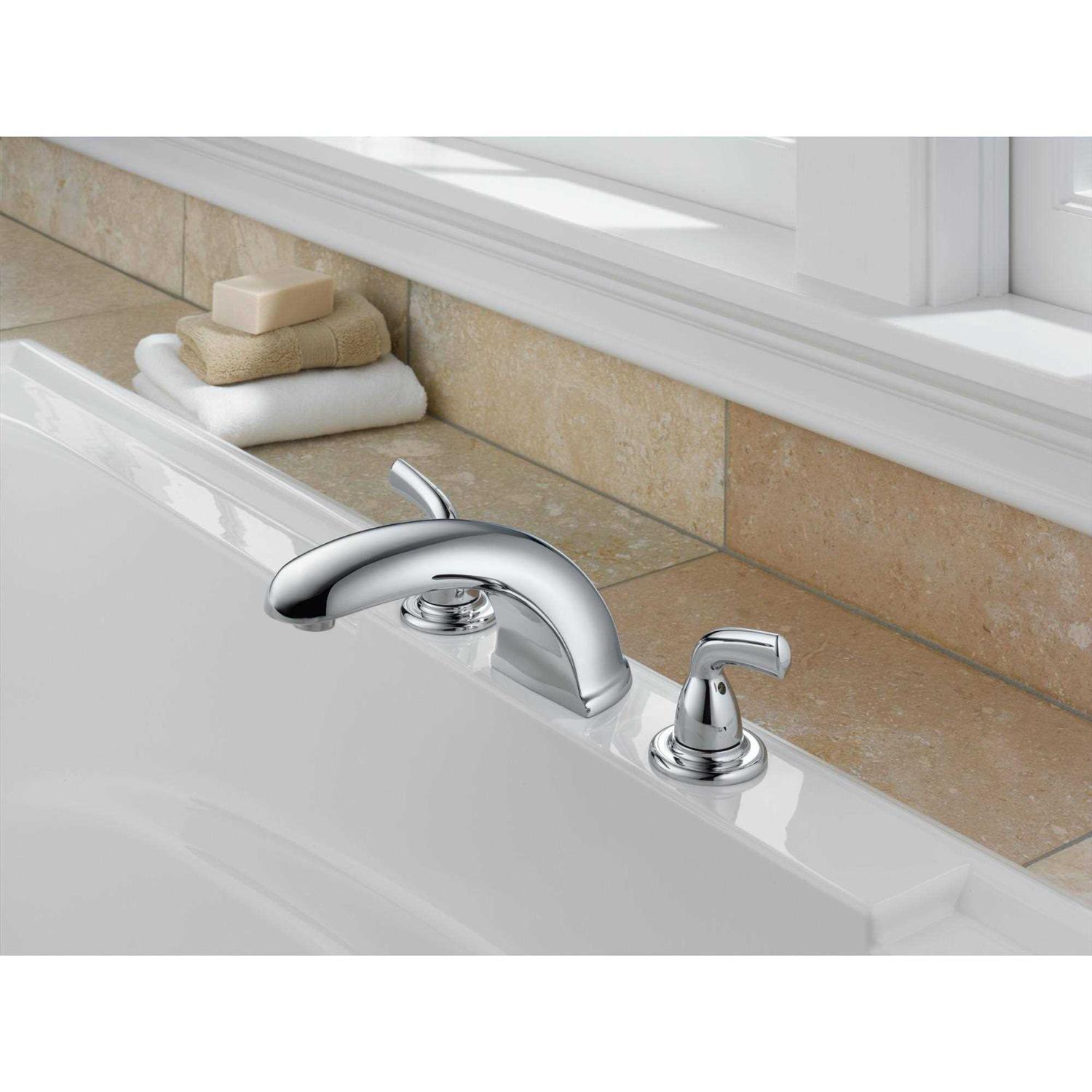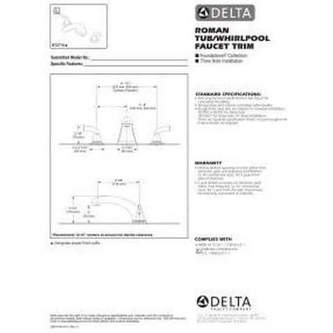 Complete your bath with a beautifully designed Delta roman tub faucet, meticulously crafted to turn heads and enhance your experience. Brilliance finishes are durable, long-lasting and guaranteed not to corrode, tarnish or discolor. This Brilliance Stainless finish has subtle, warm undertones which make it an excellent match with nickel or stainless steel and is extremely versatile, complementing nearly any look, be it traditional, transitional or contemporary. ADA Compliant. 3 3/16″ from deck to aerator. Easy installation also allows for above-deck adjustability.