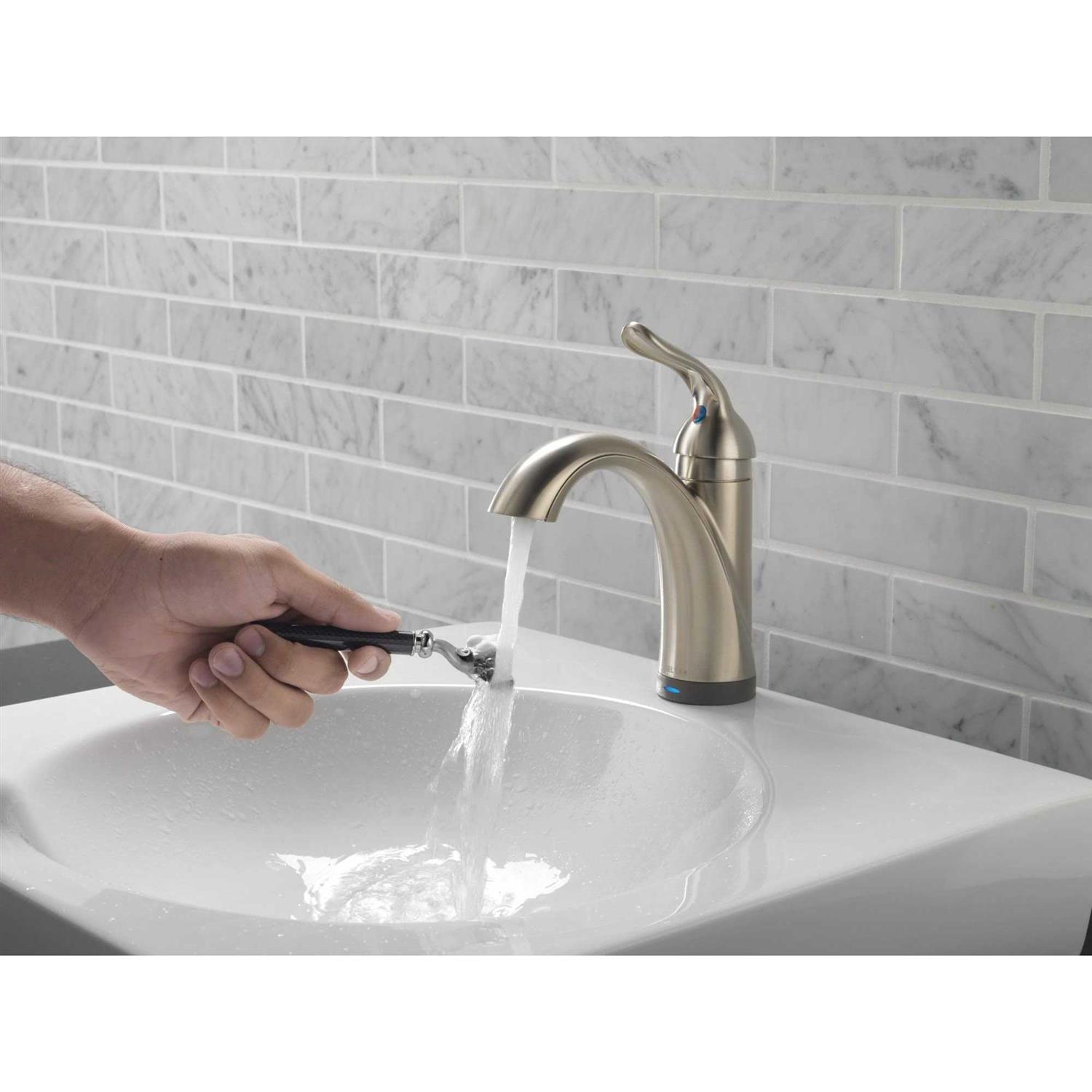 Operate hands-free by placing your hands near the faucet, with just a touch anywhere on the spout or handle, or manually using the handle. Helps keep your faucet cleaner, because washing the mess off your hands shouldn’t involve making a mess of your faucet. Automatic water flow shut-off after two minutes helps conserve water. Battery operated (6 AA included) for up to 2 year battery life or 6 C (not included) for up to 5 year battery life. Optional A/C adapter EP73954 may be ordered separately. With Touch2O Technology a simple touch anywhere on the spout or handle will start and stop the flow of water. LED light signals when touch mode is active and when batteries are running low. Automatic water flow shut-off after one minute if the water is left running.