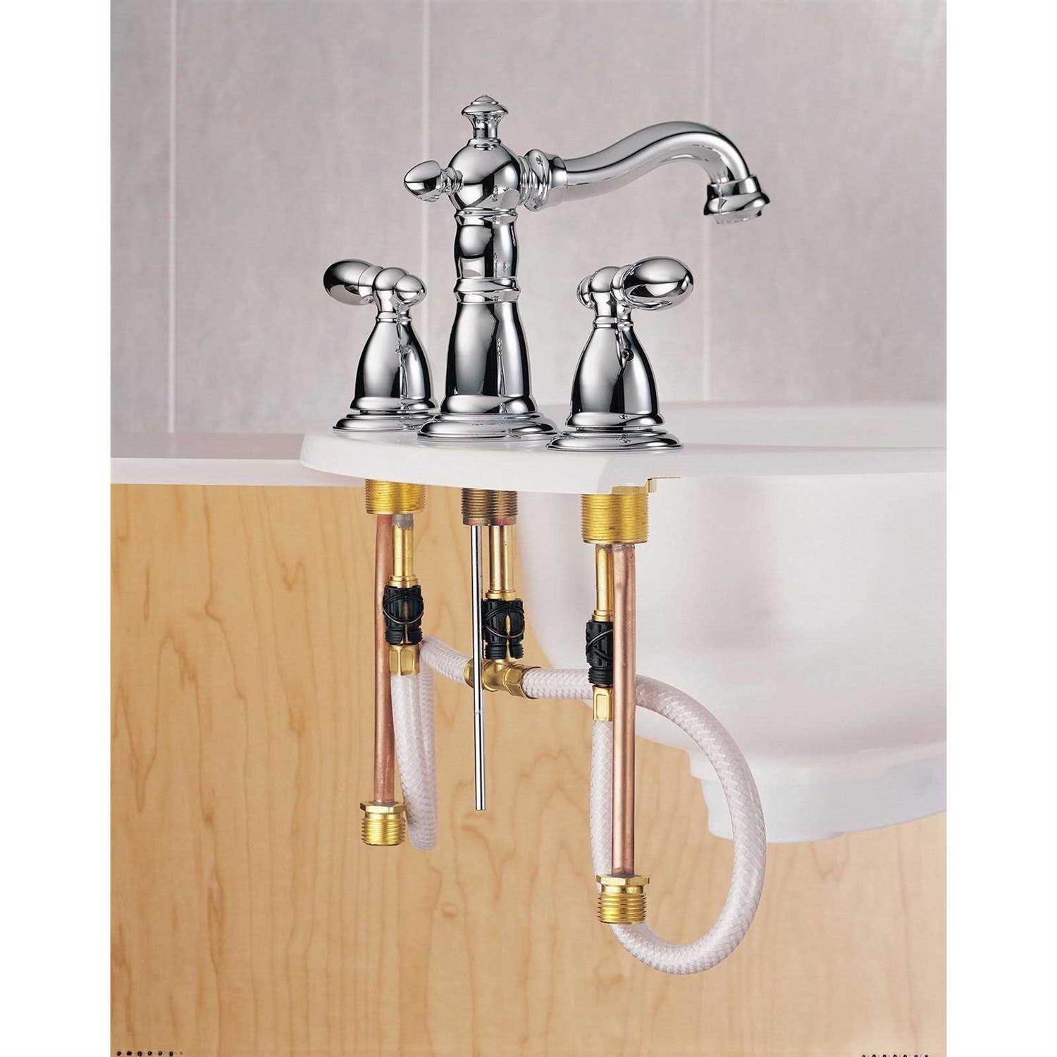 This Quick Hose Connect Assembly helps you easily get your bathroom sink water running. This assembly is made to use with widespread bathroom sink faucets and it’s easy to use as it makes an audible click when it’s connected correctly. This is an easy DIY project.
