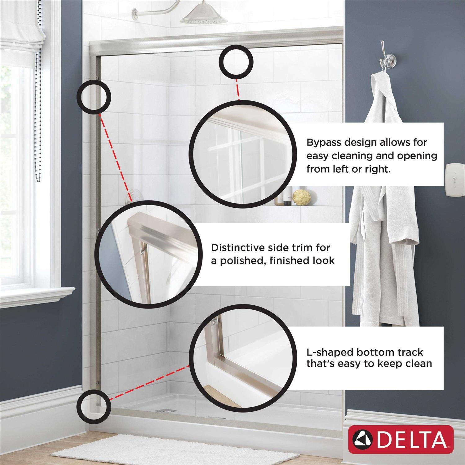 Delta SD3956938 Classic 48 Wide Sliding Semi Frameless Shower Door with Clear Glass