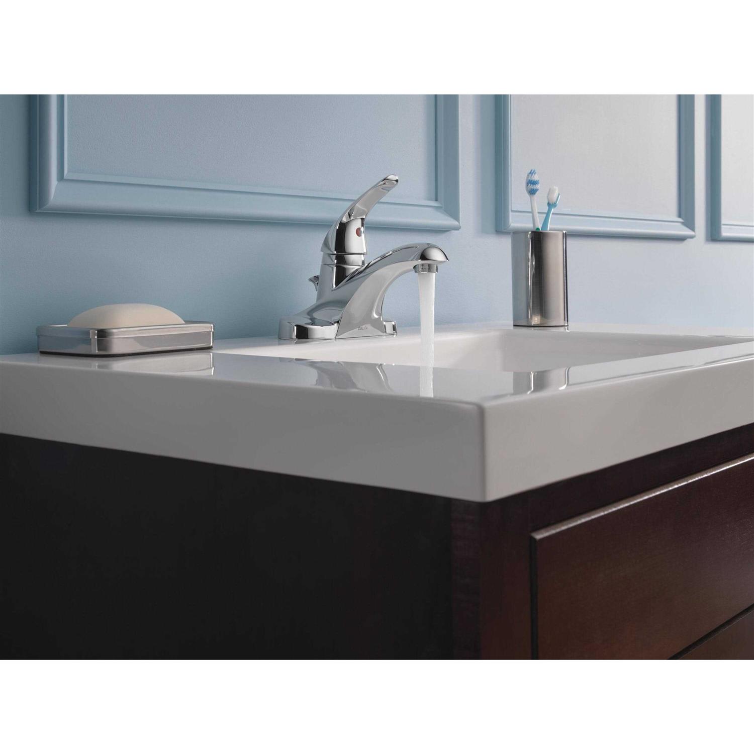 For an updated look or for new installation, consider the foundations 4 inch 1-handle bathroom faucet in chrome. The faucet features a deck-plate mounting design and is installed in 3 holes with 4 inch on-center spacing. The single lever design makes the faucet easy to operate while the low-arc spout leaves plenty of room for washing hands. This environmentally-friendly faucet is Water Sense-certified to reduce water waste.