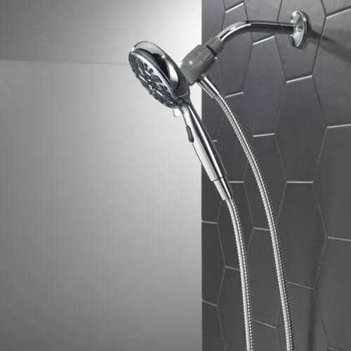 Experience a better shower with the control and flexibility of a Delta hand shower. Great for showering yourself or your loved ones and pets, as well as for keeping your shower and tub clean. SureDock Magnetic Hand Showers bring reliable docking within reach. An integrated magnet on the back of the hand shower snaps your hand shower into place and holds it there, so it stays docked when not in use and doesn’t droop over time. While other products may gather unsightly mineral build-up over time, Delta soft rubber Touch-Clean spray holes allow any mineral residue to simply be wiped away for an instantly refreshed look with no need for soaking or the aid of chemical cleaners. The pause setting gives you ample space for shaving, lathering and other shower tasks, without worrying about overspray or water waste. This spray setting helps you conserve water, so you can worry less about depleting your supply of hot water and you help the environment too. Delta WaterSense labeled faucets, showers and toilets use at least 20% less water than the industry standard helping you save water without compromising performance.