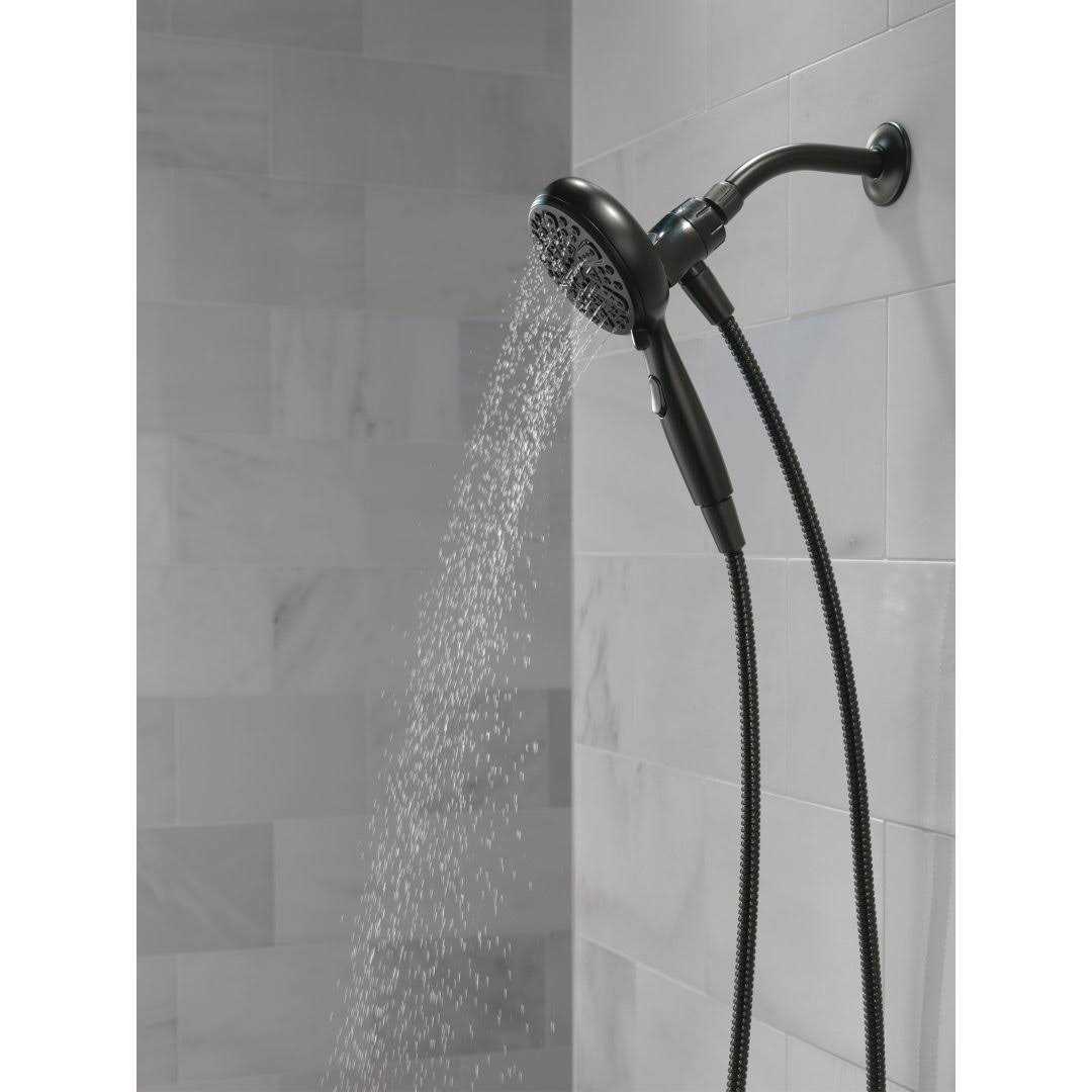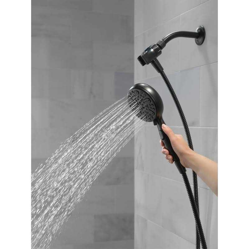 Experience a better shower with the control and flexibility of a Delta hand shower. Great for showering yourself or your loved ones and pets, as well as for keeping your shower and tub clean. SureDock Magnetic Hand Showers bring reliable docking within reach. An integrated magnet on the back of the hand shower snaps your hand shower into place and holds it there, so it stays docked when not in use and doesn’t droop over time. While other products may gather unsightly mineral build-up over time, Delta soft rubber Touch-Clean spray holes allow any mineral residue to simply be wiped away for an instantly refreshed look with no need for soaking or the aid of chemical cleaners. The pause setting gives you ample space for shaving, lathering and other shower tasks, without worrying about overspray or water waste. This spray setting helps you conserve water, so you can worry less about depleting your supply of hot water and you help the environment too. Delta WaterSense labeled faucets, showers and toilets use at least 20% less water than the industry standard helping you save water without compromising performance.