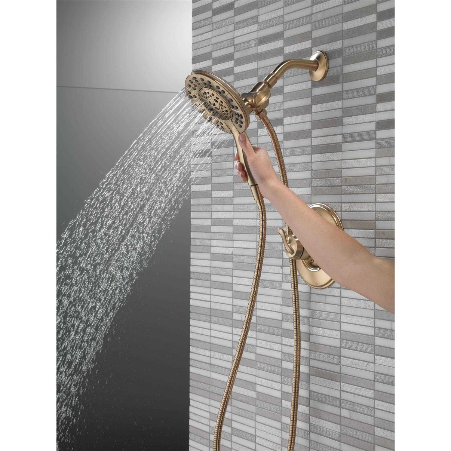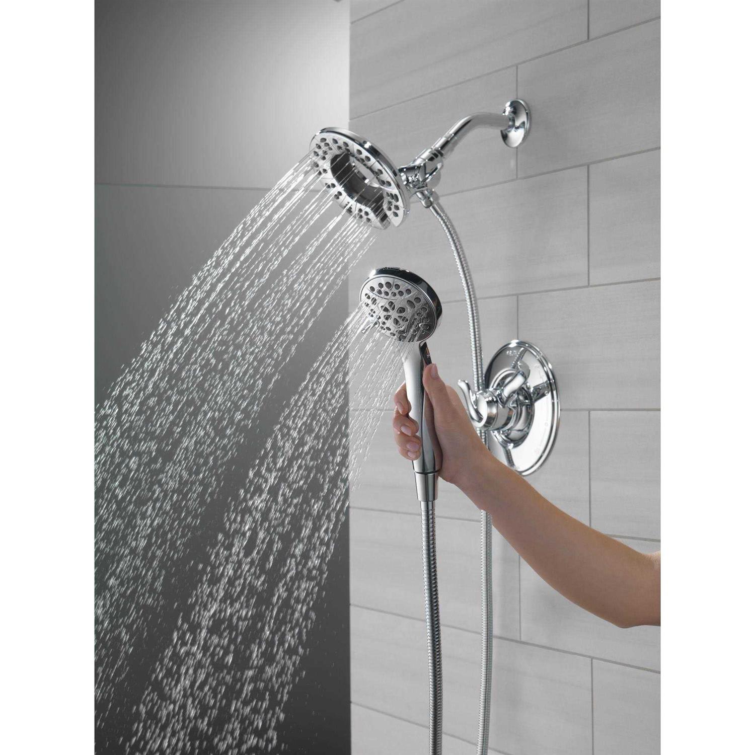 The Delta In2ition Two-in-One Shower features a detachable hand shower which can be used separately from or simultaneously with the shower head. This integrated dual-functionality gives you maximum flexibility without sacrificing warmth, as you can choose to have water streaming from the shower head only, the hand shower only or both the shower head and hand shower at once. While other products may gather unsightly mineral build-up over time, Delta soft rubber Touch-Clean spray holes allow any mineral residue to simply be wiped away for an instantly refreshed look – with no need for soaking or the aid of chemical cleaners. The pause setting gives you ample space for shaving, lathering and other shower tasks, without worrying about overspray or water waste. This spray setting helps you conserve water, so you can worry less about depleting your supply of hot water – and you help the environment too. Delta WaterSense labeled faucets, showers and toilets use at least 20% less water than the industry standard—saving you money without compromising performance.