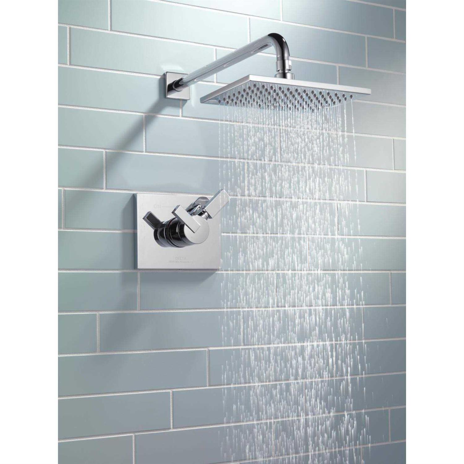 Shower Trim, Brand/Series Vero Monitor 17, Product Type With Volume Control, Number of Handles 1, Handle Type Lever, Finish Chrome, Standard ADA, Flow Rate 2.5GPM, Showerhead Type 1 Function Raincan Full Body Spray, Showerhead Diameter 8-21/32×5-45/64IN, Kit Contents Showerhead RP62955, Shower Arm, Flange, Handle and Escutcheon, Material Brass, Used on Requires MultiChoice Universal Rough-In Valve R10000 Series, Length 18-5/6IN, Width 7IN, Height 7-3/5IN, Additional Information Touch Clean Maximum Dial Rotation Adjustable Between 90 Degree and 180 Degree, Lever Volume Control Handle, 15 Inch Shower Arm
