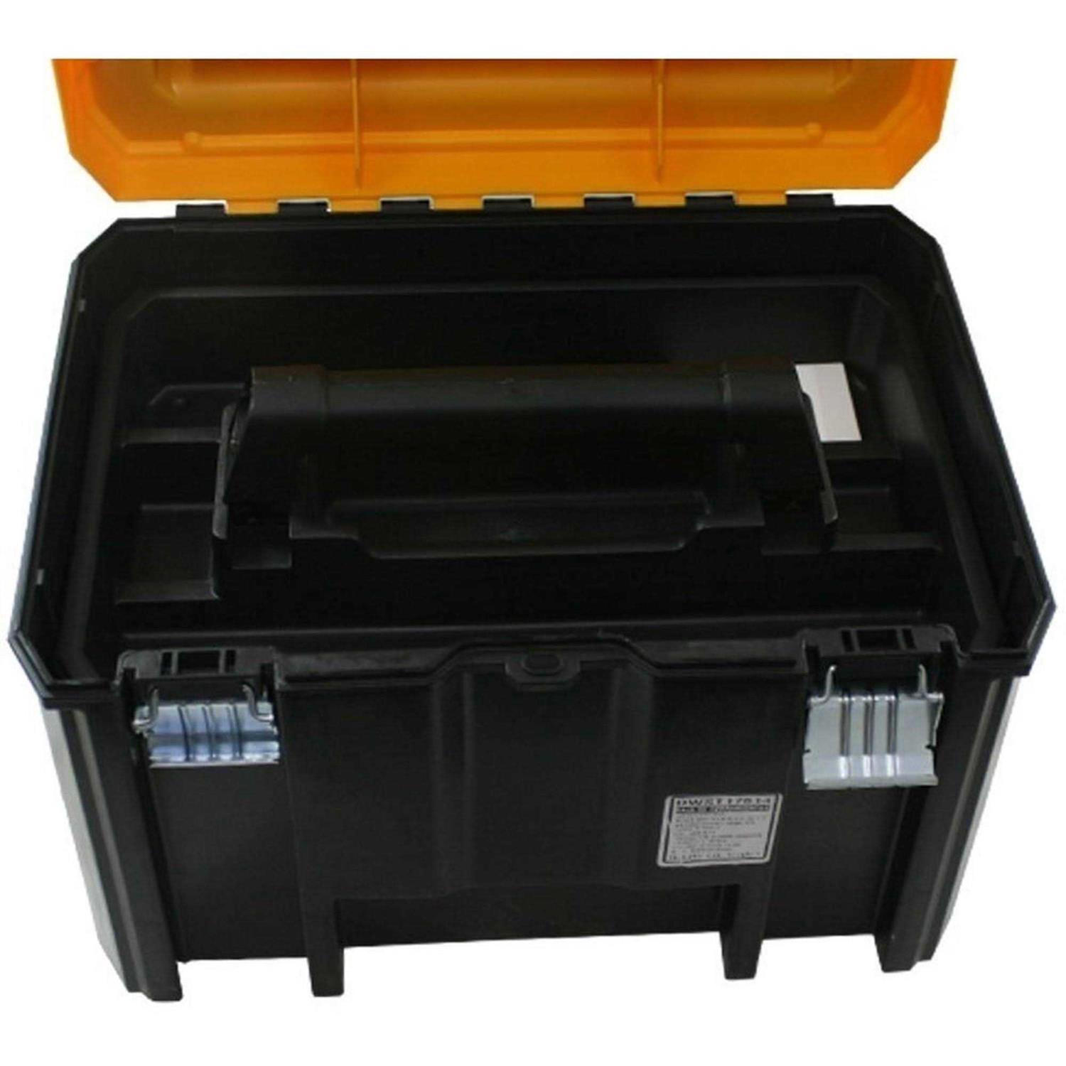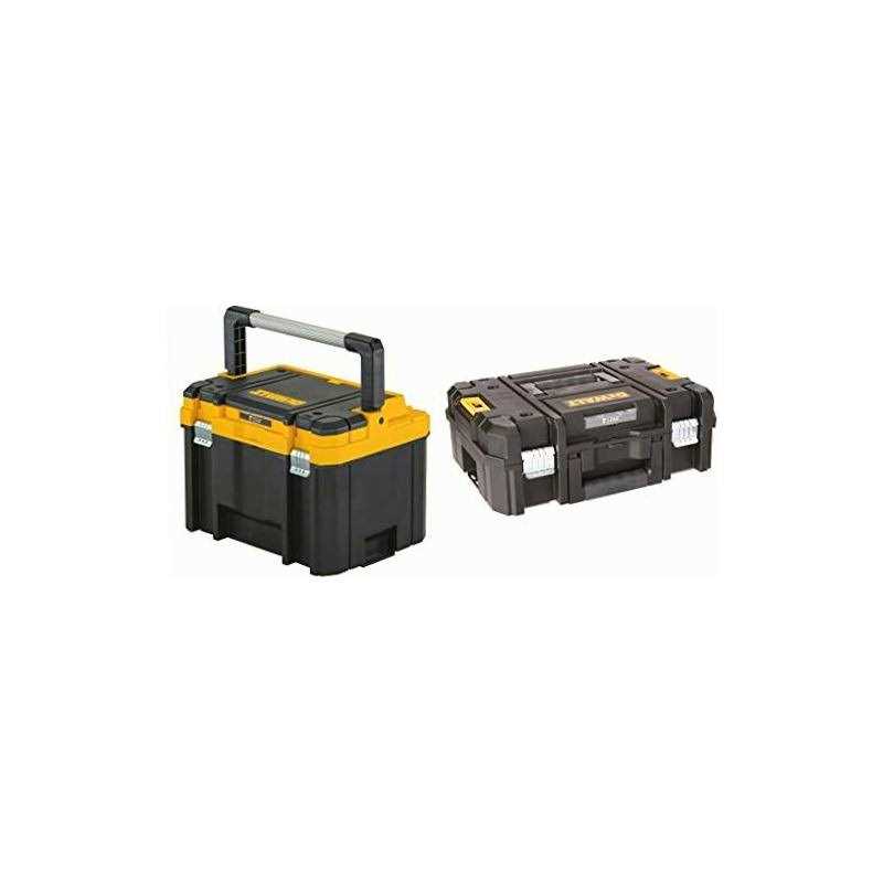 The DEWALT TSTAK Deep Toolbox with Long Handle helps you take your tools and other equipment with you wherever you go. Its long design is suitable for screwdrivers, pliers, hammers and similar items. This DEWALT Tstak deep toolbox with long handle has side tabs that make it easy to stack with all other Tstak boxes for greater space efficiency and stability. It’s made from heavy-duty plastic that’s strong enough to hold up to professional use and is immune to rust. The DEWALT large tools storage box has an ergonomic handle that makes it easy to carry around or take up a ladder. This unit’s top section has a fixed divider for organizing drill bits.