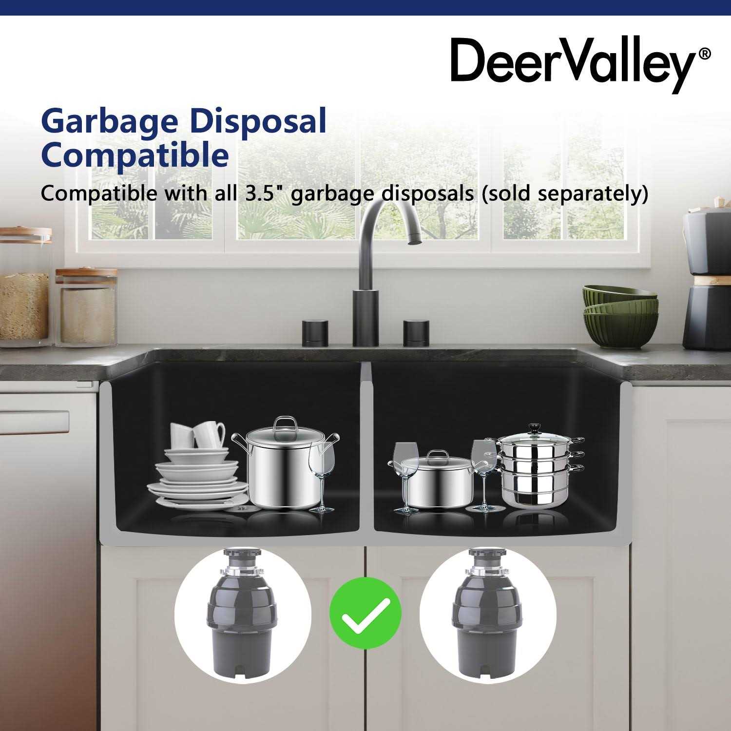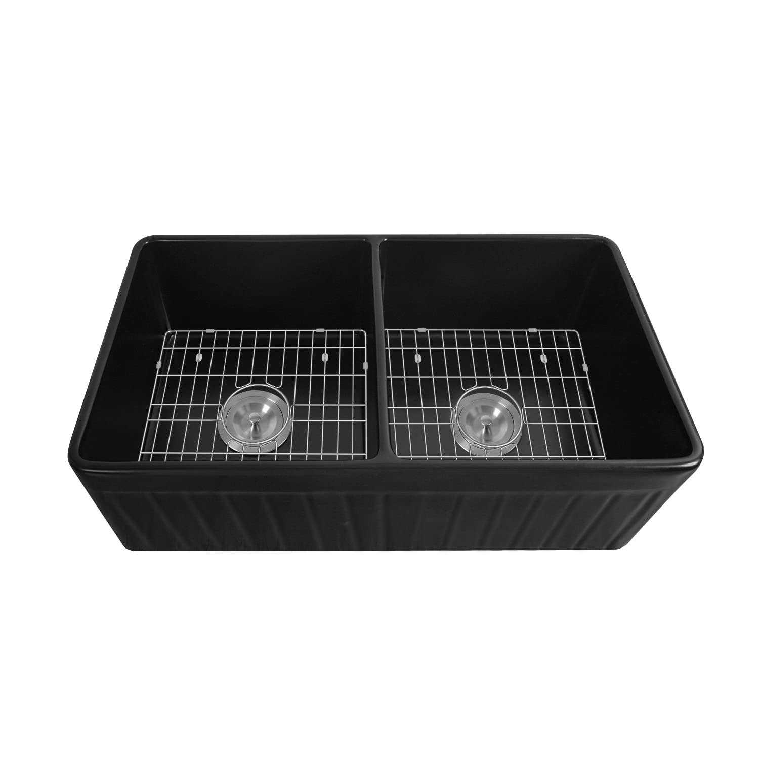 Double Bowl Kitchen Sinks, DeerValley DV-1K0013 Nova 33″ L x 18″ W Fireclay Farmhouse Sink, Reversible Apron Front Black Kitchen Sinks