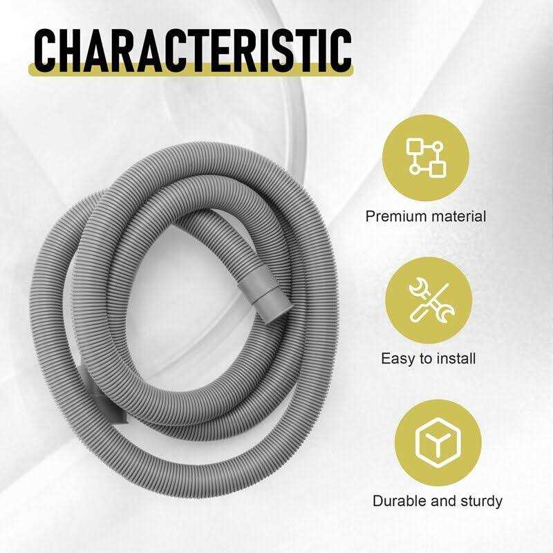 Washer drain hose is made of premium material, it is durable, odorless and anti-aging, with the features of high pressure resistant, ultra-flexible and not easily deformed The length of washing machine hose is 6.5-Feet, multi-function hose can be cut as your need, formed outlet end fits 4/5 Inch, 9/10-Inch, 1-1/5-Inch and 1-1/2-Inch Washing machine drain extension set can be directly connected to the washer as a drain hose, or can be connected to the drain hose as an extension hose Equipped with a stainless steel hose clamp, which can fix the washer hose well to prevent it from falling off and leaking, the clamp is durable and anti-rust Colour:gray Material:PP Package Contents: 1 * Hose 1 * clamp Only the above package content, other products are not included. Note: Light reflection and different displays may cause the color of the item in the picture a little different from the real thing. The measurement allowed error is +/- 1-3cm.