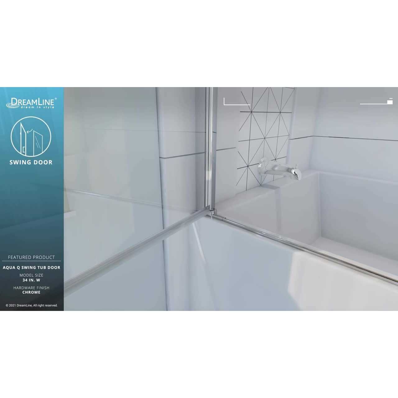 DreamLine SD-373458Q-01 Aqua-Q Swing 34 in. W x 58 in. H Frameless Tub Door in Chrome