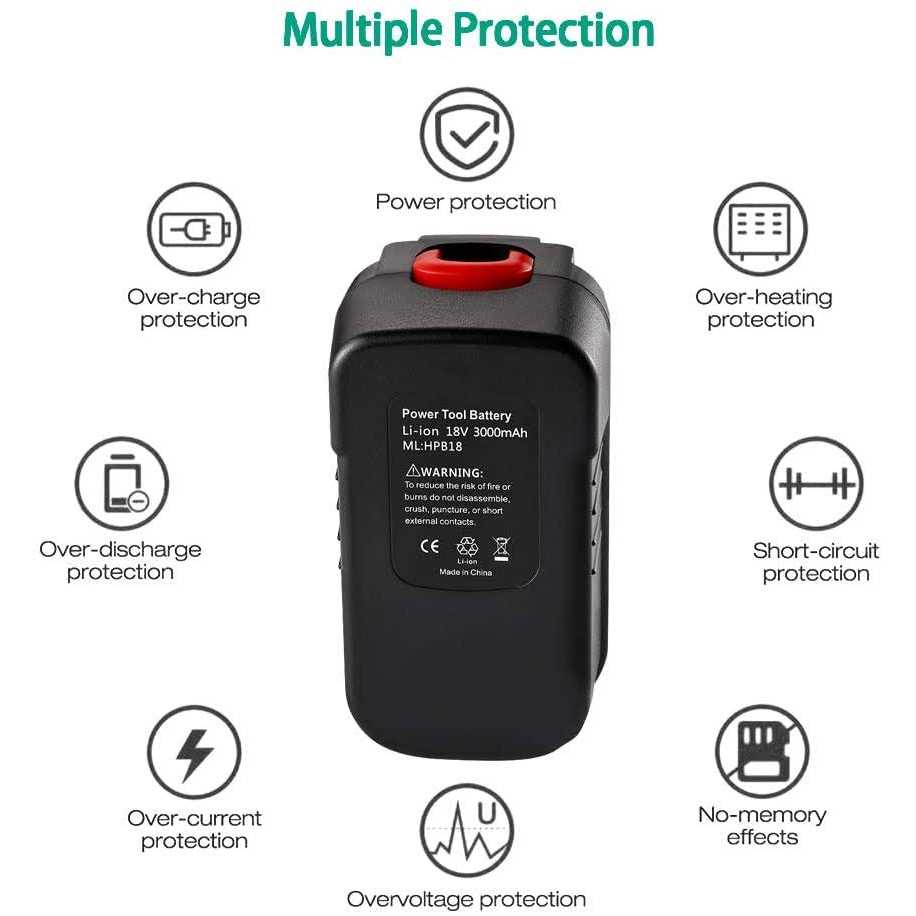 DSANKE 2pack DSANKE replacement for black and decker 18 volt 3.0ah lithium-ion Battery for 244760-00 HPB18 Battery a1718 a18 a18e hp