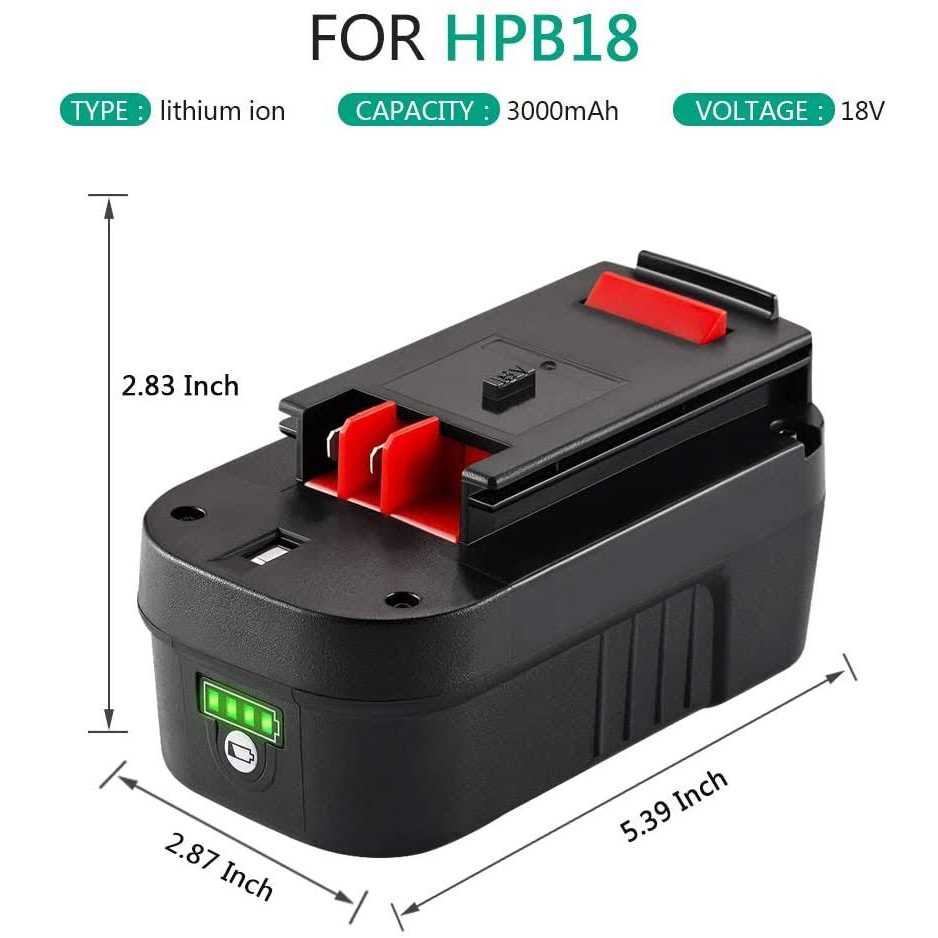 【Lithium-ion】2Pack Dsanke Hpb18 18V 3.0Ah Lithium-Ion Battery Replacement for Black and Decker 18Volt Battery for 244760-00 Hpb18 Battery A1718 A18