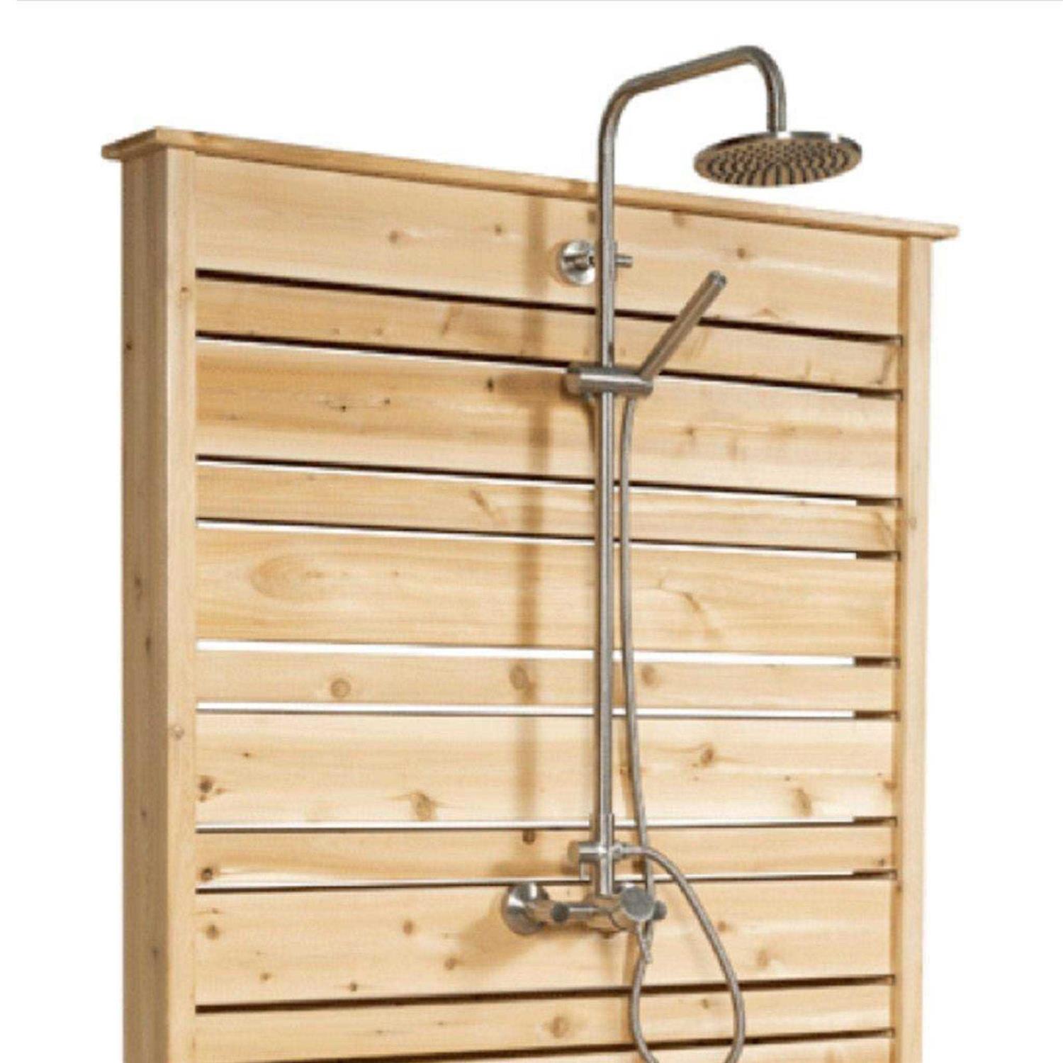 Dundalk LeisureCraft Premium Shower Hardware (Hot & Cold Water) Hot & Cold full stainless steel with hand held shower. The Connection to this outdoor shower fixture is Female 3/4″ NPT, so you will need a male NPT fitting to connect. If you want to use garden hoses only you can order our Garden Hose Connection Kit which includes all required fittings to connect to a garden hose.
