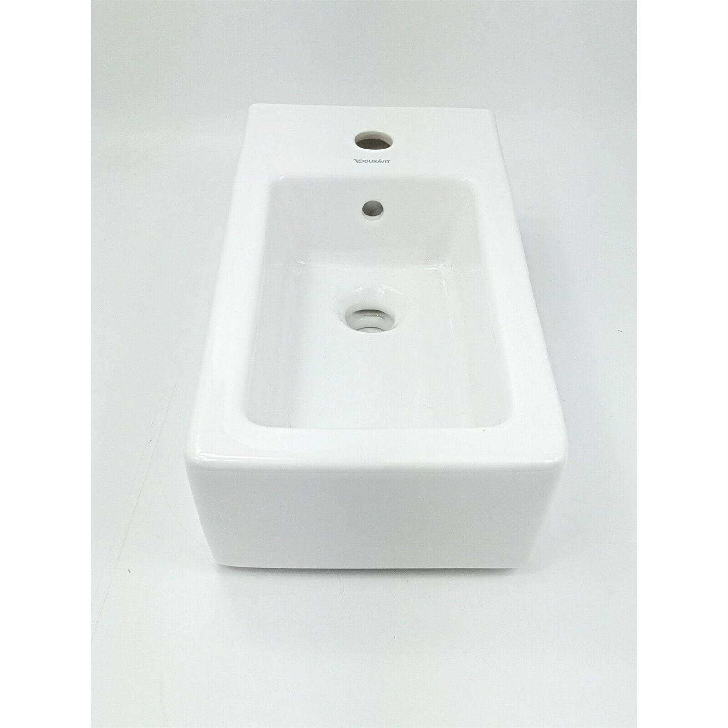 Made in Germany by Duravit. A part of the Vero Collection. The small stature and geometric design of the Vero Handrinse Basin 10-Inch make it a great fit in modern bathrooms with limited space. A rectangular basin running lengthwise from a centered single-hole faucet offers the perfect sink for hand washing, while its porcelain frame ensures enduring quality. Duravit started quite small, in 1817, as a earthenware manufacturer located in the Black Forest of Germany. Fast-forward to today: they sells contemporary bathroom products world-wide, with a large collection that includes sinks, showers, toilets, bath accessories and bathroom furniture. Duravit combines resource- and water-saving technology with beautiful, functional designs (including the Philippe Starck collections).
