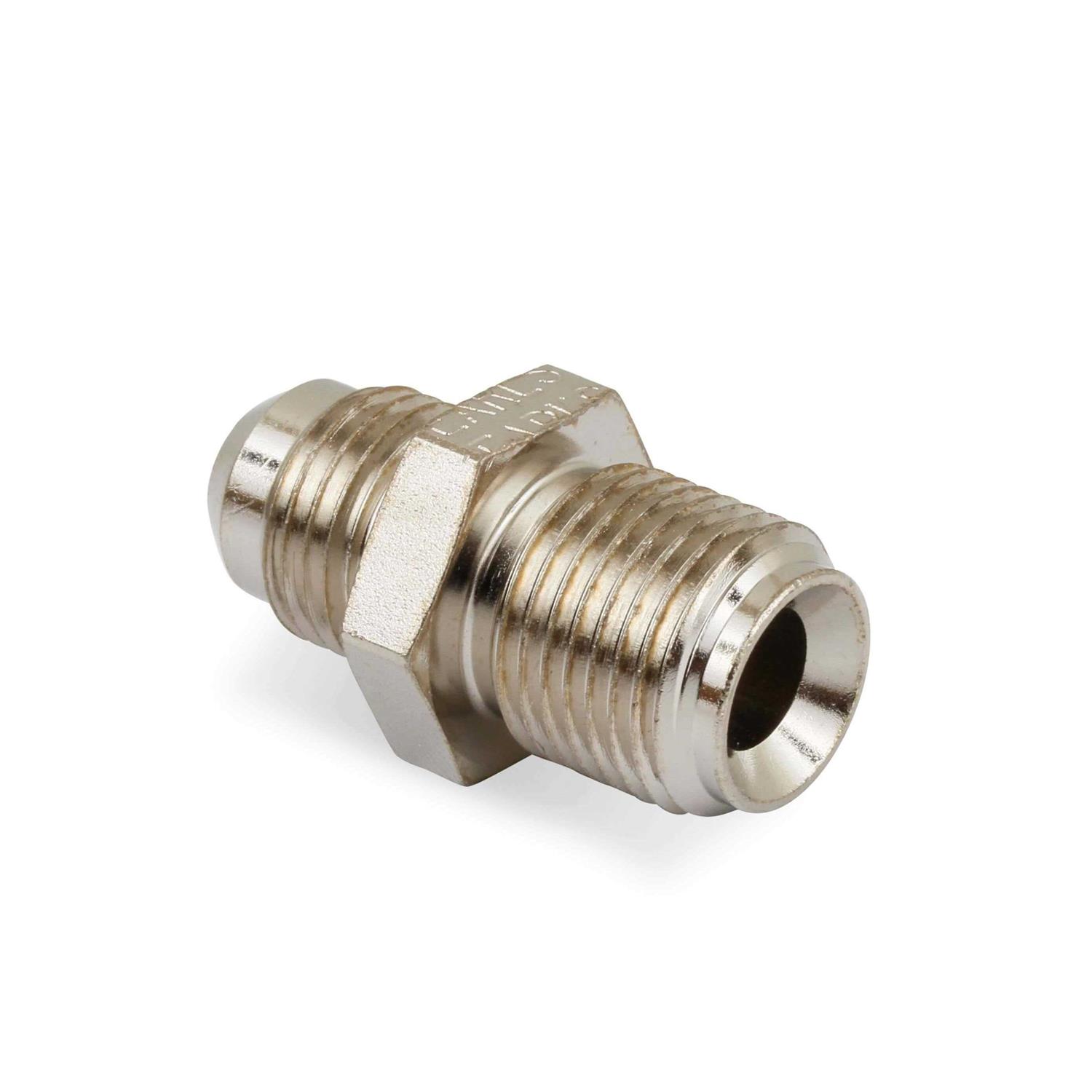 These new fittings are made w\/ slightly longer threads on the inverted flare end of the fittings. In some applications, the old style fittings would bottom out on the threads before the flare would seal correctly. The Steel adapters are recommend for Power Steering applications, and the aluminum fittings are ideal for most other inverted flare applications. Choose from fittings w\/ nickel-plated steel, blue anodized aluminum, or black anodized aluminum.