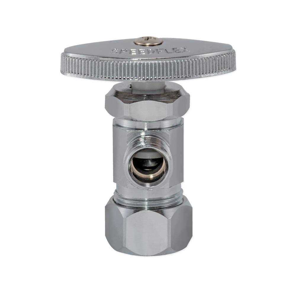 Eastman’s 5/8″ Comp (1/2″ Nom) x 3/8″ Comp Angle Stop Valve controls water flow to household plumbing fixtures. With multi-turn, you are able to stop the flow of water leading to the plumbing fixture, allowing for maintenance and repair without turning off water to the entire home. The Teflon seats resist corrosion and provides a watertight seal.