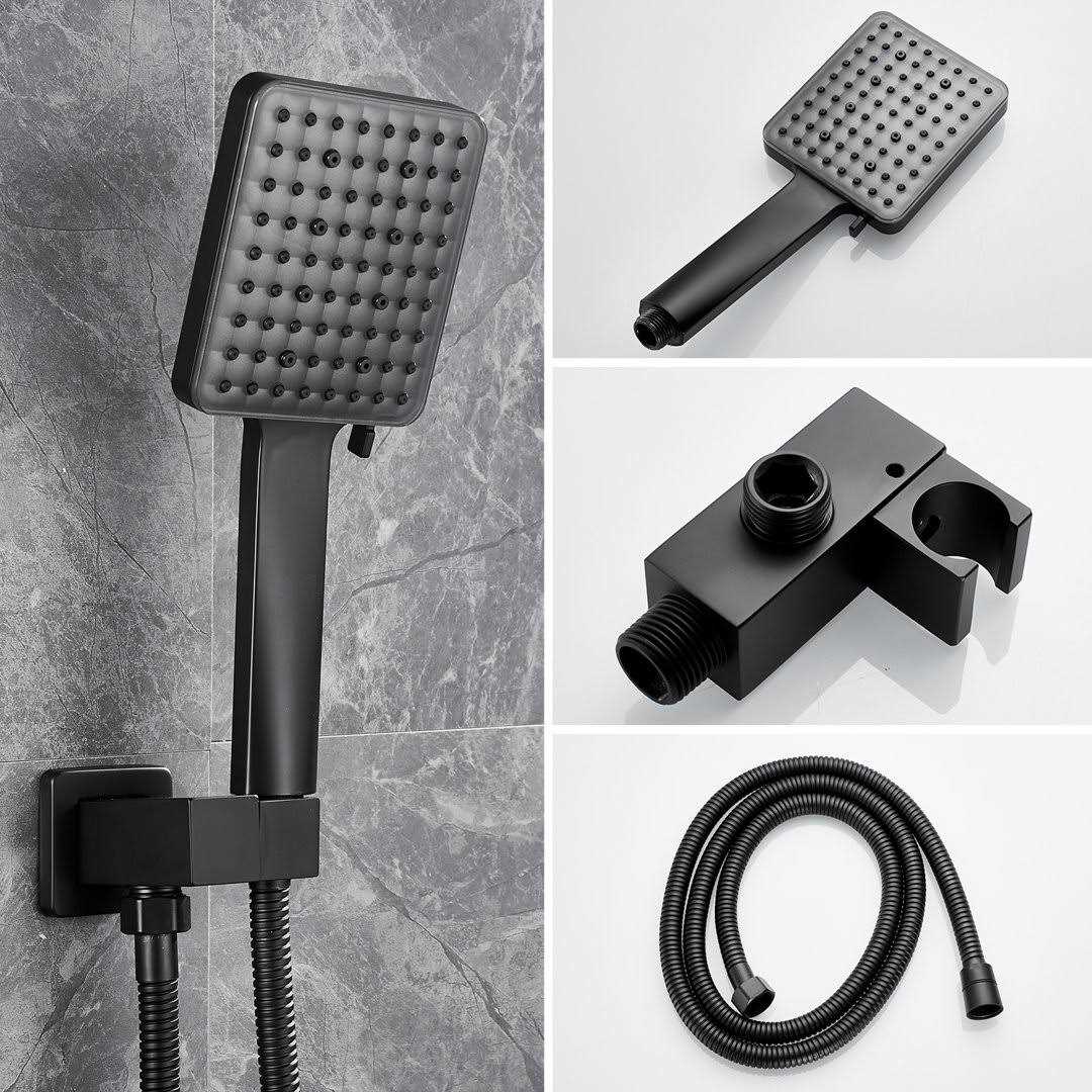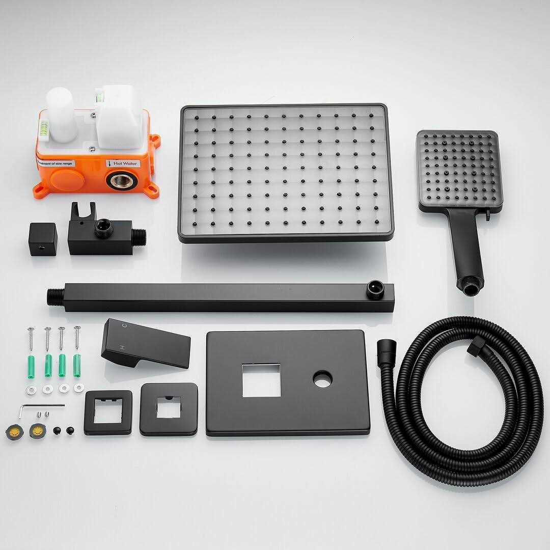 Complete Shower Faucet with Valve and Shower Head Systems Wall Mounted Shower Combo Set for Bathroom. Shower faucet set package includes rain-style shower head, 15.7 in. shower arm Shower trim kit includes integrated diverter mixing rough-in valves brass handheld shower and shower holder. This complete shower system takes pure and simple geometric forms and composes them into an expression of modern luxury. Elegant design easily blends with the decor of your bathroom. Color: Black.