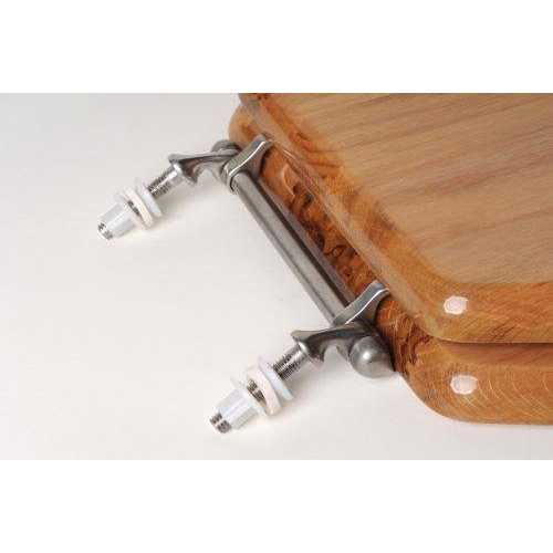 JONES STEPHENS toilet seats are known for their high quality, designer styles and finishes, innovative features and consumer comfort. Since no 2-pieces of wood are identical, each JONES STEPHENS premium designer toilet seat is 1 of a kind. Crafted from 100% solid wood, each toilet seat is painstakingly piano-finished and refined through an eleven-step process. The high-gloss finish prevents swelling and cracking while enhancing the appearance of the wood. Each toilet seat is fitted with four 4-color coordinated bumpers that help safeguard and protect the toilet seat and provide stability while in use and is designed with premium metal hinges in coordinating finished colors. Color: Natural Oak.