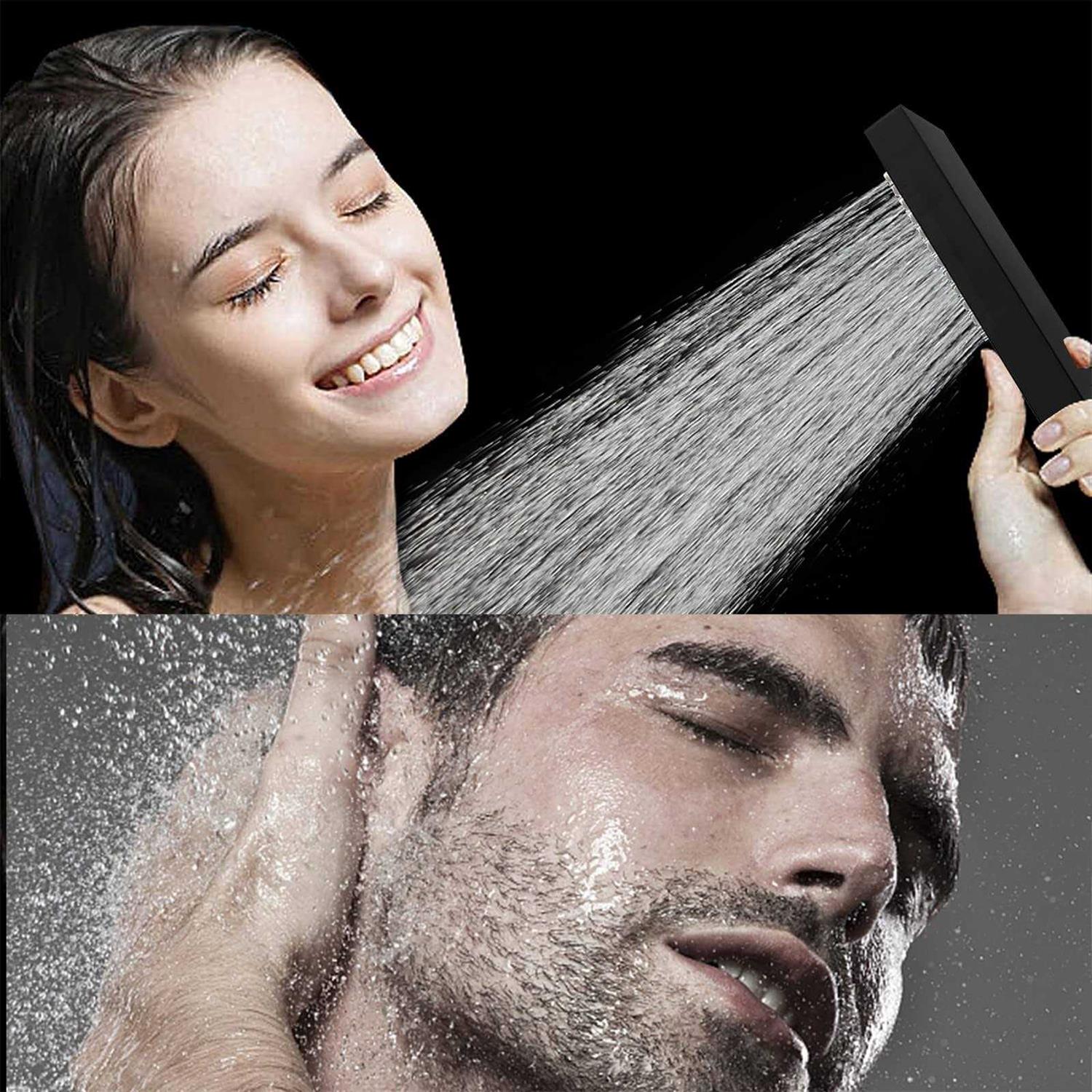 Enga Bathroom Square Matte Black Solid Brass Hand Held Shower Head with Wall Connector and Hose System Wall Mount Handheld Showerheads Set