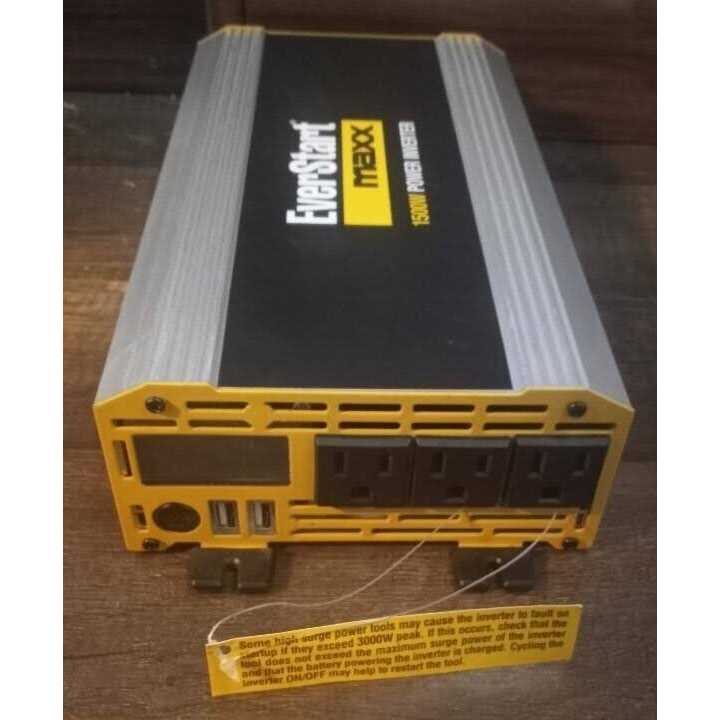 The EverStart MAXX PC1500E power inverter gives you a full 1500 Watts of AC power when connected a 12V battery. Equipped with triple 120 Volt AC outlets and dual USB ports. Power multiple electronics including everything from smartphones and laptop computers to electronic devices and more. With the easy-to-read LCD screen, you can track power, wattage in use, battery levels, and the handy fault indicator. With built-in short circuit, overload, thermal ground fault, and high & low voltage protection, you get peace of mind with safe power and charging. The EverStart PC1500E also features a low voltage shutdown that prevents battery drain.