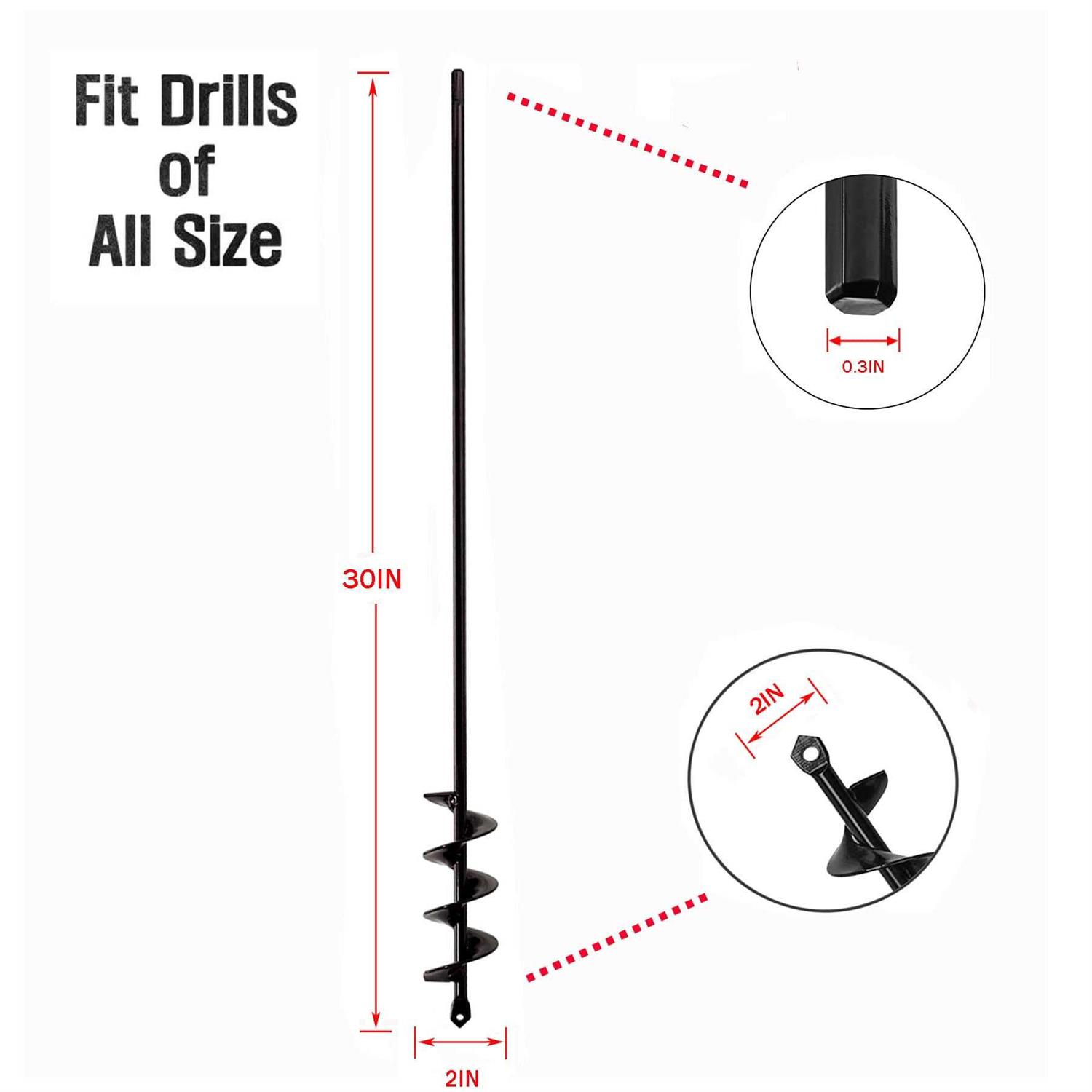 Auger Drill Bits by YOOHONG. Details:Product description: High strength steel material and superior craftsmanship for quick and clean earth hole drilling. Multi-functional hole digger drill bit for fence posts, decks, planting trees, ice fishing holes and more. 【Applicable Scene】: The auger drill bit not only can be used for digging holes, loosening soil, weeding roots and for PERFECT BULB planting auger for tulips, iris, bulbs, bedding plants, and seedlings all plants in the garden; mixing seed, soil, fertilizer, paint,But also effortlessly dig post holes . 【Upgraded drill bit】: With our drill, you can drill hundreds of holes in a few minutes, which saves you a lot of time, and you don’t need to spend a lot of effort to complete it and save you from back strains. It saves both time and energy. 【Easy To Use】: Extra strong and durable auger spiral drill bit easily fits any standard drill to ensure maximum digging performance.