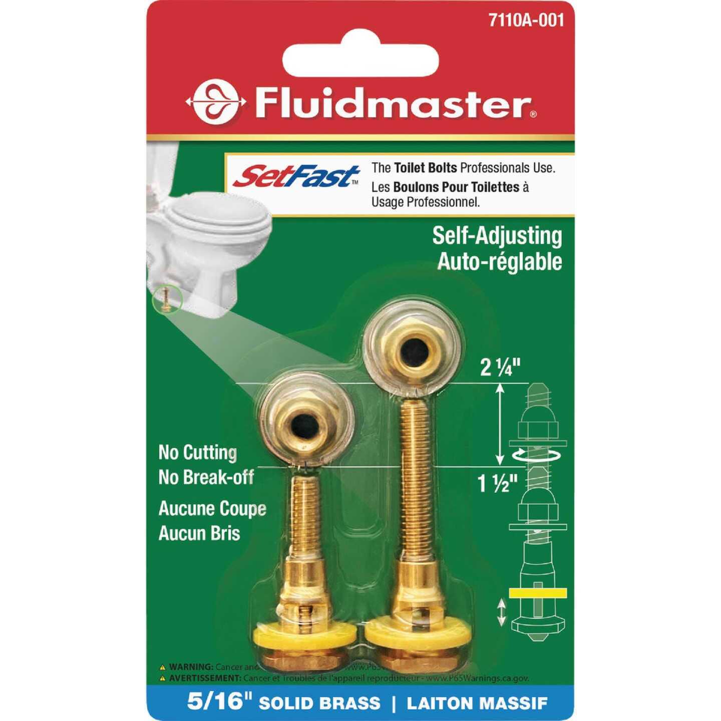 The Fluidmaster 7110A SetFast Adjustable Closet Toilet Bolts are designed to be an easy to install bowl-to-floor bolt set to eliminate cutting or breaking off. The innovative design allows for a quick twist adjustment, so the toilet bowl bolts either shorten or lengthen for a perfect fit. This closet bolt kit includes all that is needed to set a toilet fast, including adjustable brass toilet bolts, brass nuts and stainless steel washers. Durable brass construction for strength and corrosion protection. Self-adjusting design, simply screw up or down to fit.