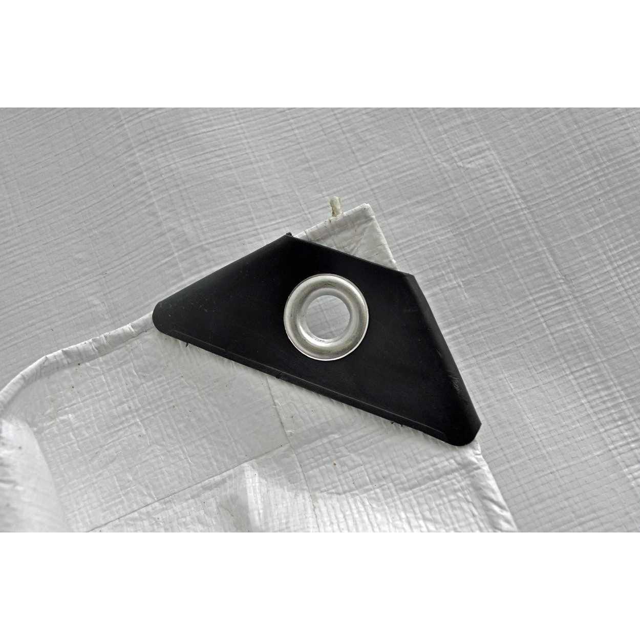 This White reversible polyethylene tarp is a full finished size opposed to other “cut size” tarps. The super heavy duty polyethylene material is 5.5 oz./sq.yrd, 14 X 14 cross weave, laminated on both sides and UV treated for maximum weatherproofing and tear resistance. High strength rust resistant grommets on each industrial capped corner and approx. every 18″ around the perimeter along with a rope-reinforced hem add to this tarps long lasting durability. This is a great multi-purpose tarp that can be used around the house and/or work place.