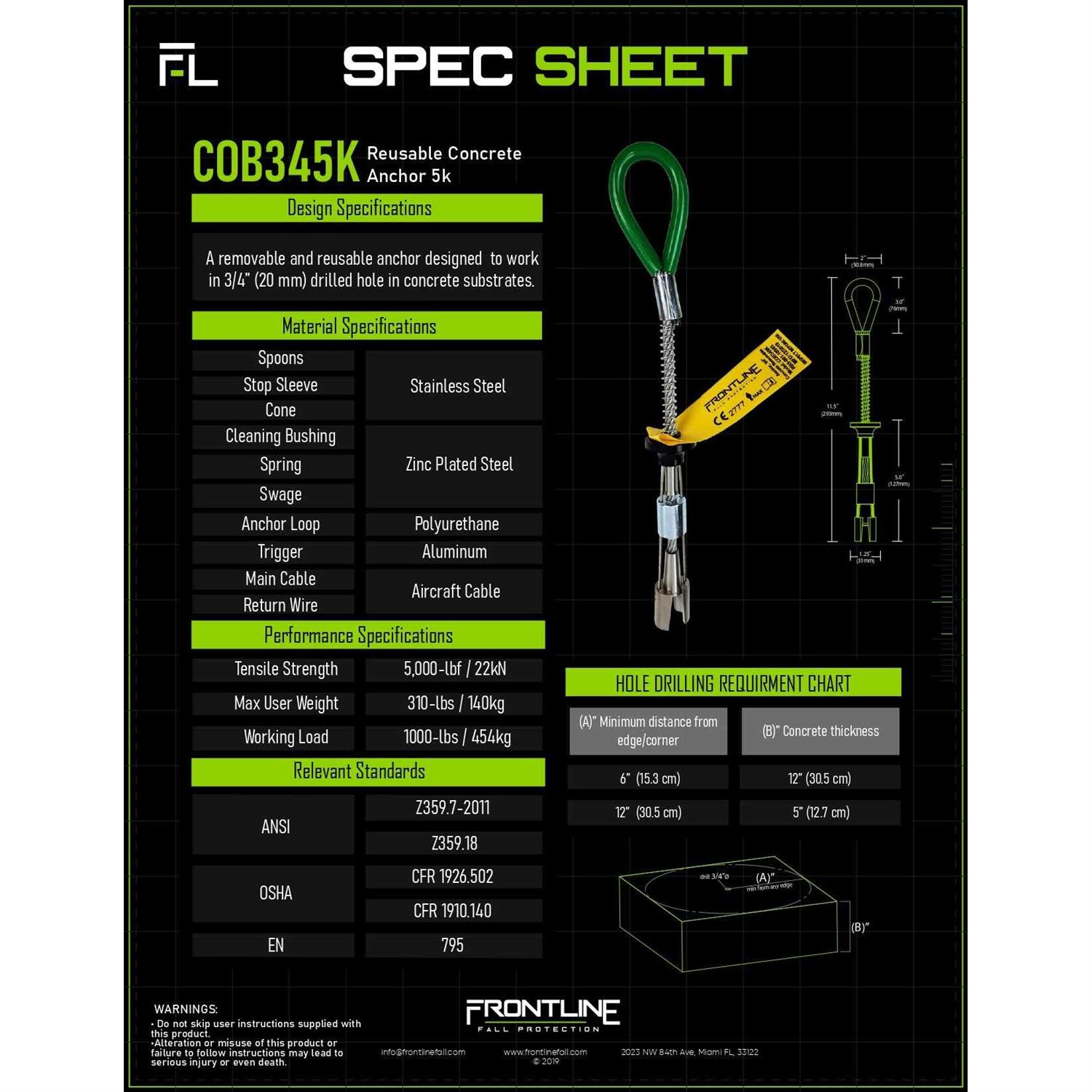 Frontline COB345K Reusable Concrete Anchor 5K