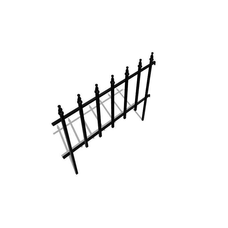The look of elegant wrought iron fencing in an affordable, easy-to-install sectional format! Create a dazzling border in your garden using this sectional fence. Classic finials adorn the top of each fence section. Two rows of horizontal rods cross each vertical rod to support the unit, and the top and bottom horizontal rods connect one panel to the next. The sections will easily maneuver to form an attractive and stable border and the powder coated finish protects the metal from the elements. The sections can be extended and configured to different shapes to fit your design. Create a stylish and functional border around your plants or walkways.