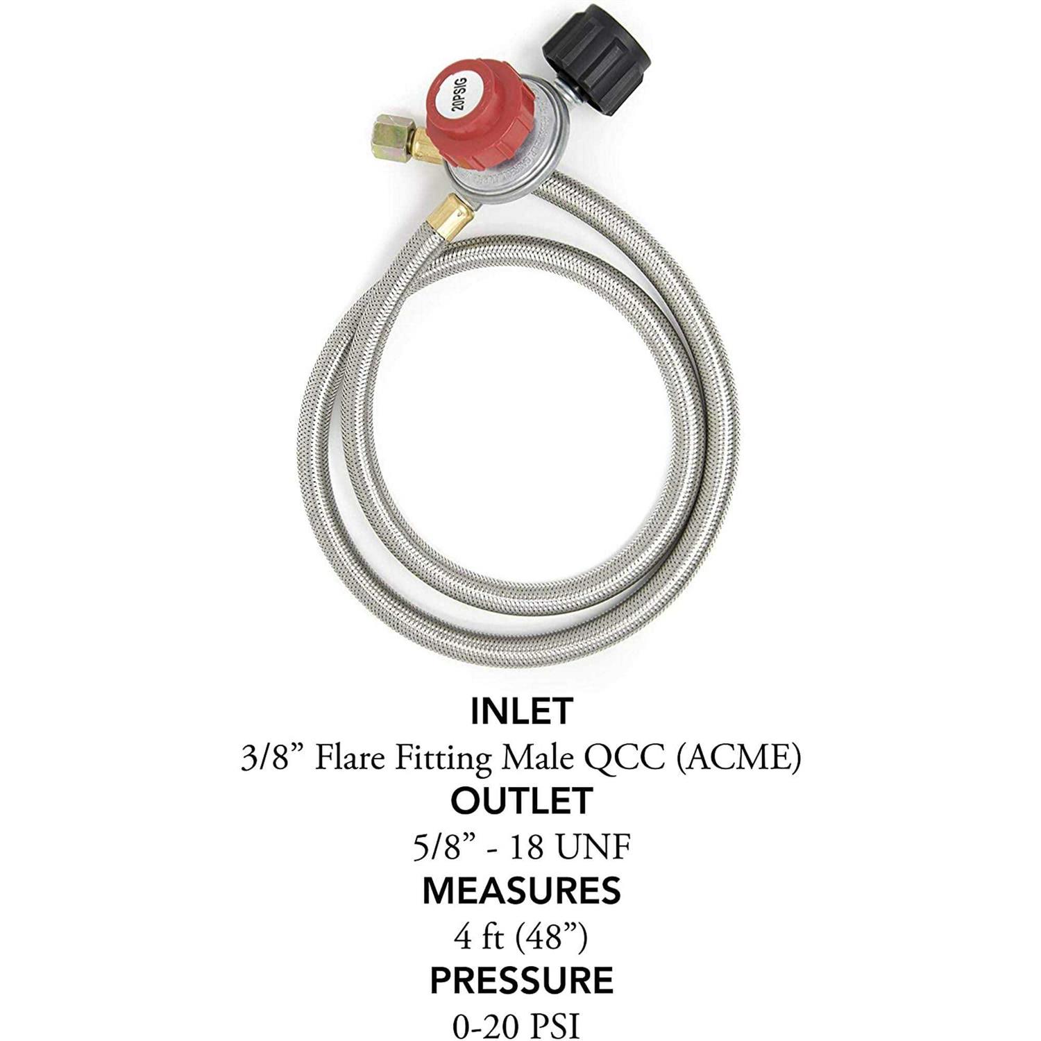 Gasone 2113+50105 4 ft Regulator and Propane Brass Orifice Steel Braided Hose