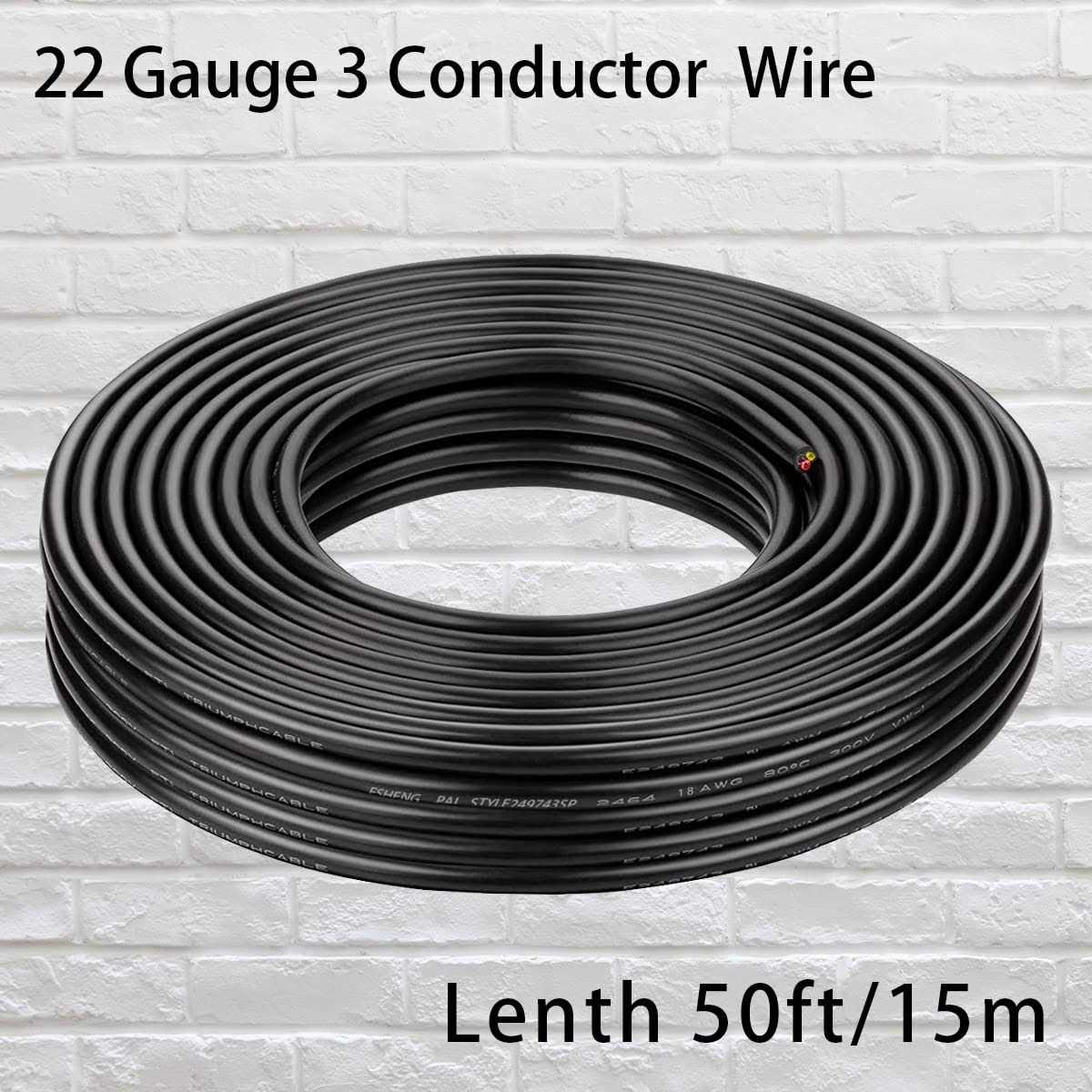 22 Gauge Electrical Wire 3 Conductor, 50ft Black PVC Case Stranded Low Voltage LED Cable