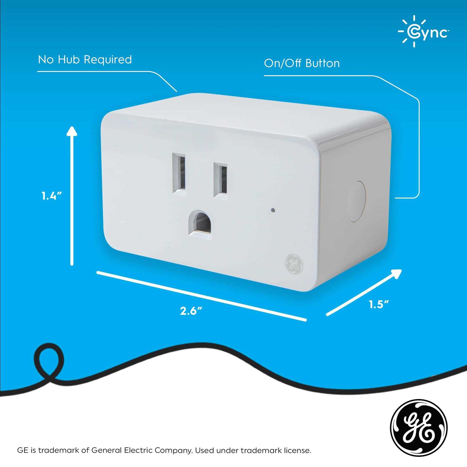 The Cync Smart Plug makes any lamp or device that plugs into a wall smart. The built-in Wi-Fi bridge adds out-of-home control for your lighting and devices and voice control when paired with a voice assistant. The plug also enables scheduling and scene setting to traditional bulbs and devices. The Smart Plug adds smart functionality to fixtures where smart bulbs won’t fit or match the look of the fixture. Pair the Smart Plug with Cync or C by GE Smart Bulbs in other fixtures and Smart S es to control all your lights together. Use the Smart Plug with other devices like curling irons, fans and electronic devices to turn them on or off remotely or schedule them to operate around your routine. The Smart Plug connects directly with Google Home and Alexa devices without a hub required. Simply plug into a standard wall socket and you’re ready to go.