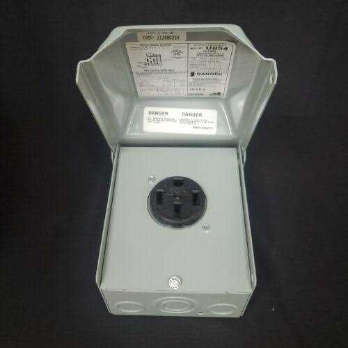 Temporary RV power outlet is factory-assembled and factory-tested. Ready to use with no need to assemble individual parts. Single, heavy-gauge welded flange NEMA 3R rainproof enclosure protects against weather, vandalism and nuisance tripping. It is lockable and is engineered for maximum protection of receptacles, cords, plugs and breakers. All-in-one construction for factory assured terminations. Rolled edge door for cord protection. Manufactured from heavy G-90 zinc coated steel which resists corrosion and fading. Complies with National Electrical Code and OSHA requirements. 7″ height x 5.5″ width x 5.25″ depth, 4.06 lb.