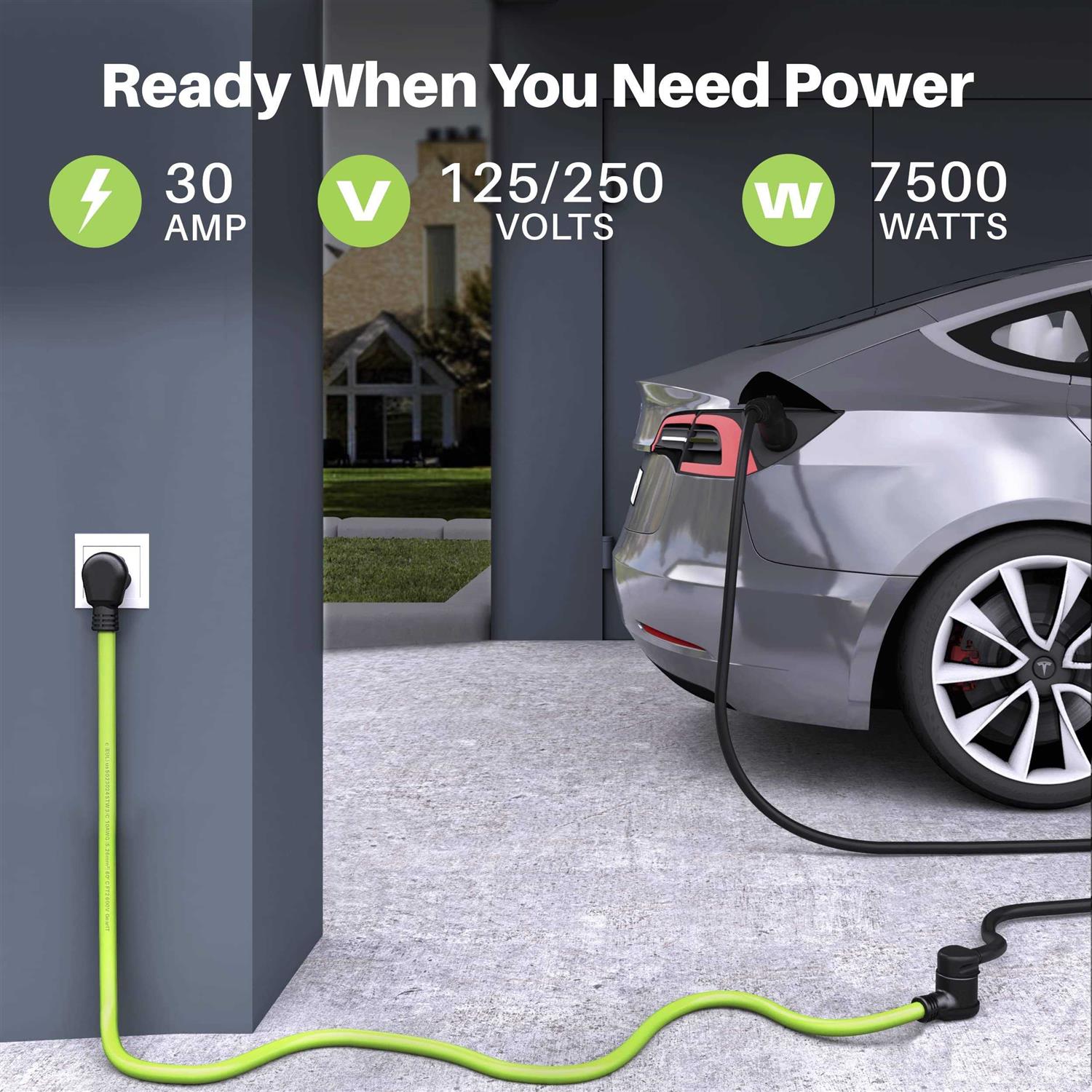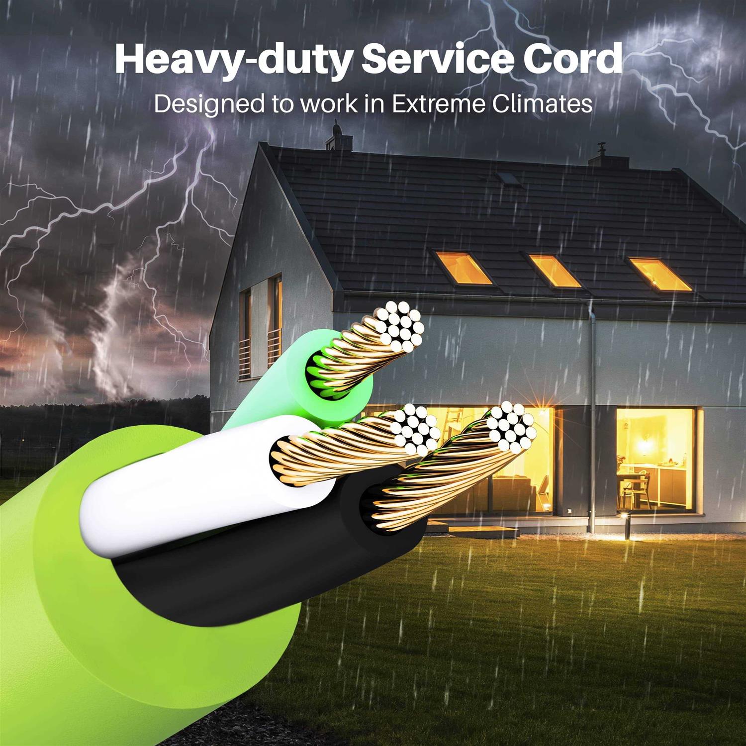 POWERFUL DESIGN – GearIT 10 foot, 50A, 125/250V electrical power cord designed specifically to allow you to connect electric vehicle or washer/dryer to give you more space withouth needing to hire an electician. PROFESSIONAL GRADE – STW 10AWG stranded copper wire extension cord, support max 30 AMP loading, Max Rate 3750 Watt (125V) / 7500 Watt (250V). DESIGNED FOR EASABILITY – Male end 10-30P, female 10-30R end ensures safe and leak free power conduction. WEATHER RESISTANT – Heavy duty generator electric cord designed to withstand elements like wind, rain, snow, soil, and rocks for long-lasting durability that keeps you powered through hurricane season. Be prepared for power outages, hurricanes, typhoons, tornadoes, and snowstorms.