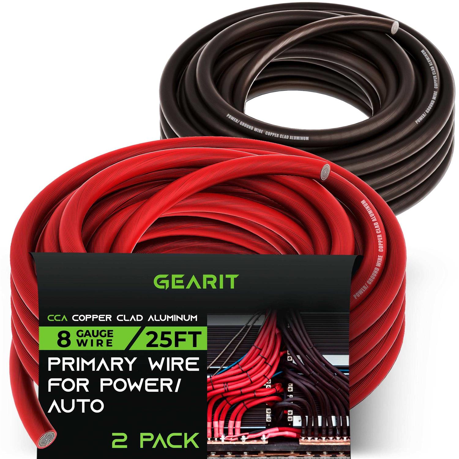 GearIT 8 Gauge Wire (25ft Each- BlackRed Translucent) Copper Clad Aluminum CCA – Primary Automotive Wire Powerground, Battery Cable, Car Audio Speaker