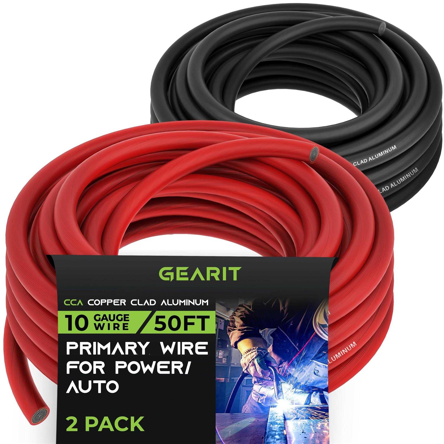 GearIT Primary Automotive Wire 10 Gauge (50ft Each – BlackRed) Copper Clad Aluminum CCA – Powerground for Battery Cable, Car Audio, Wire, Trailer