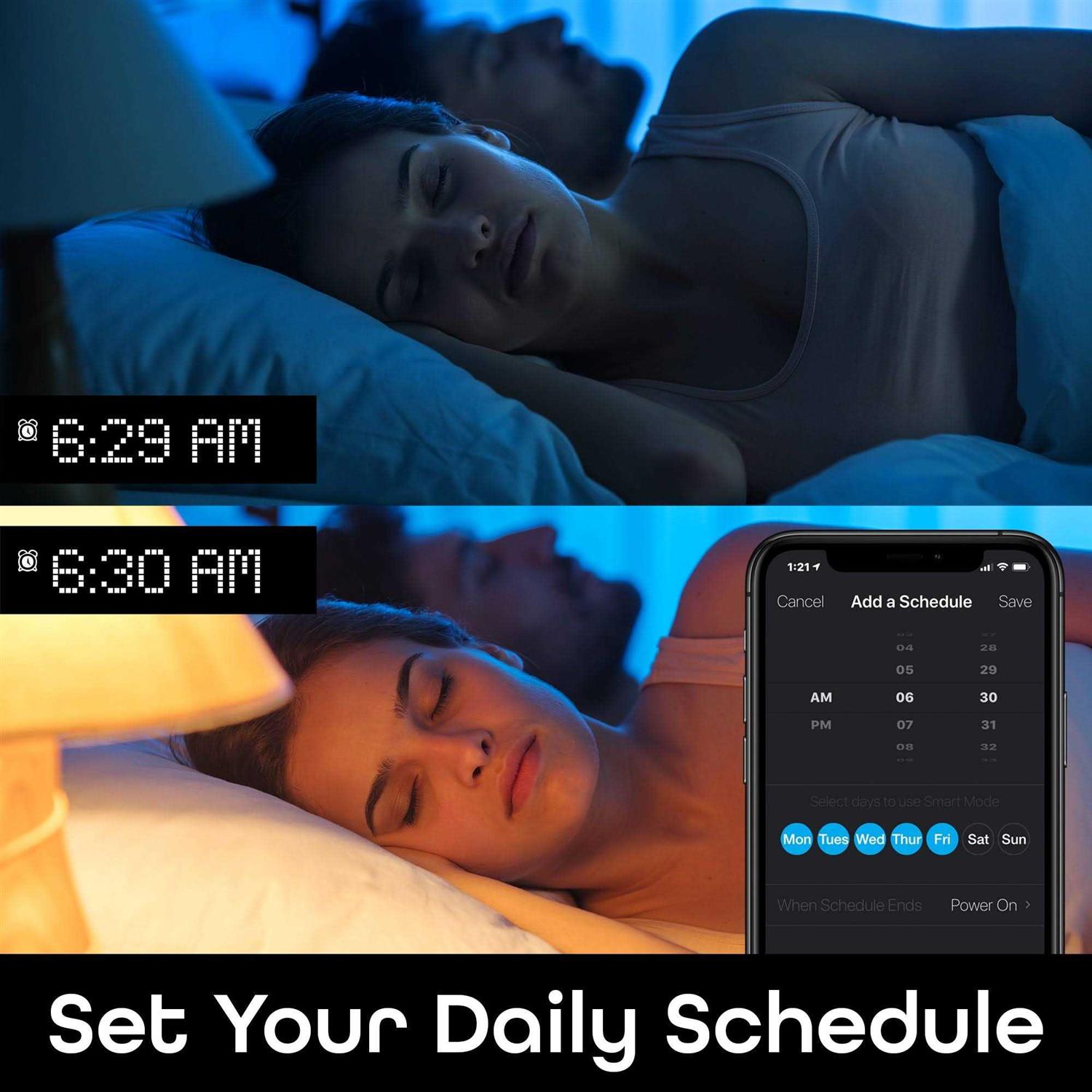 • Set your smart dimmer switch to automatically turn on and off or dim while you’re home or away.Geeni app.