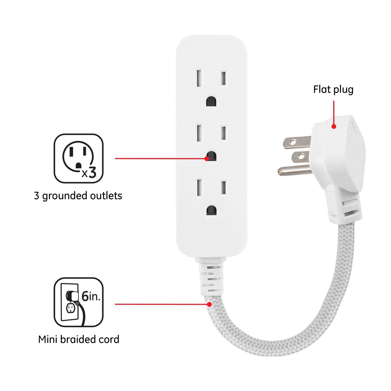 • Mini Cord – Extend the use of your outlet with the GE Designer 6-Inch Mini Cord with 3-outlets power strip