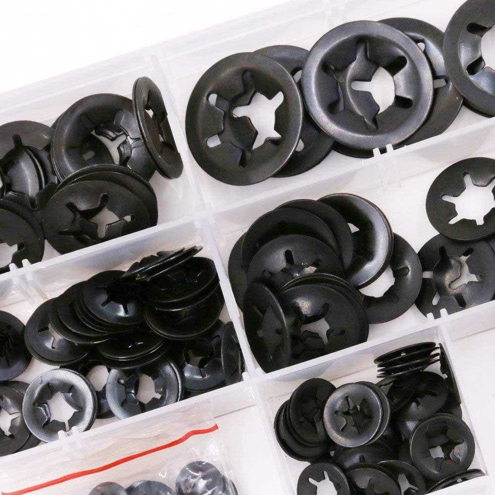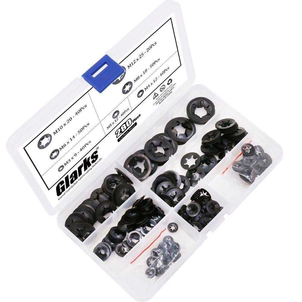 Glarks 280pcs Internal Tooth Starlock Push On Locking Washers Speed Clips Fasteners Assortment Kit