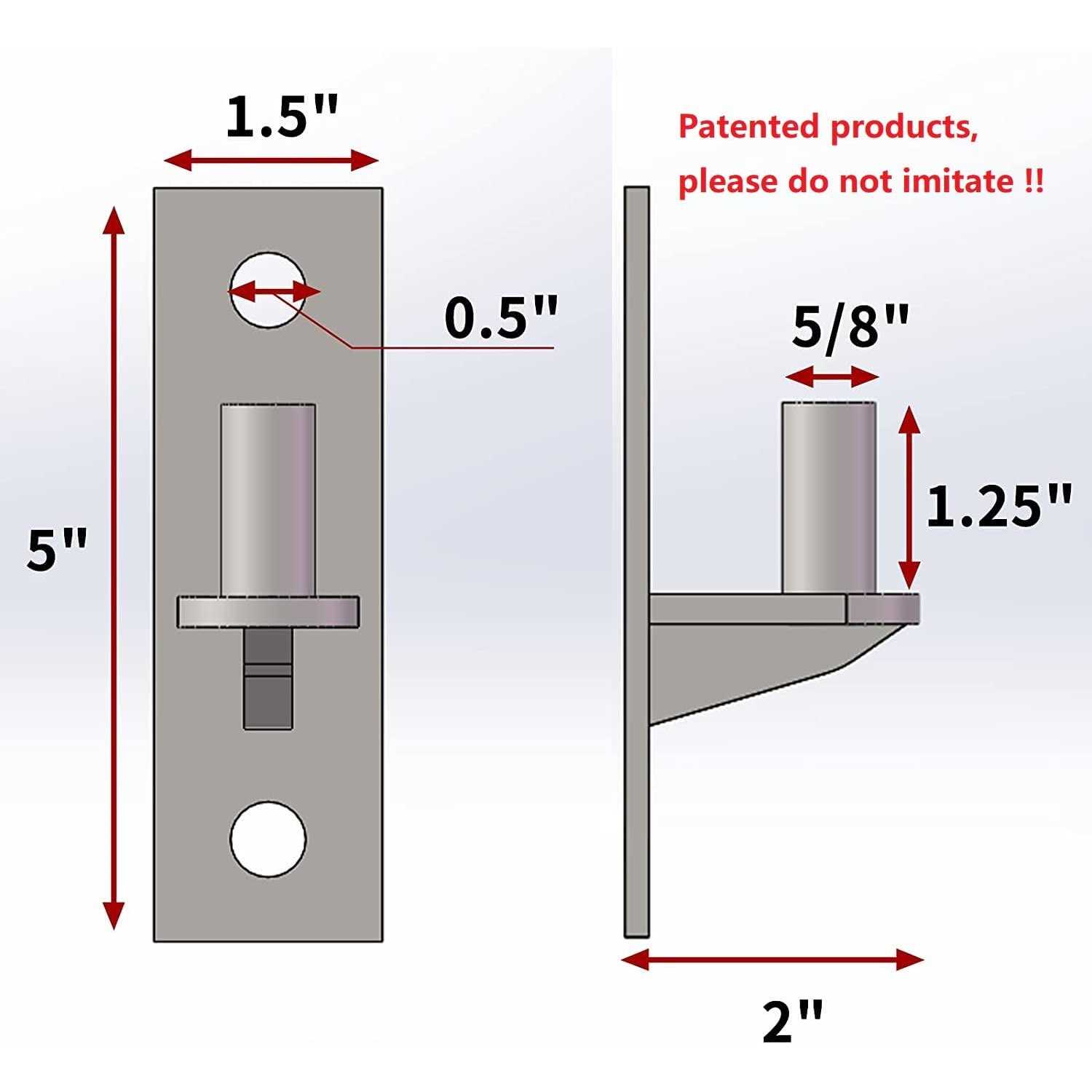Premium quality: Premium fence post chain link gate hinge, made of high quality iron, silver galvanized coating, prevent red-rust, you can use them for a long time in your outdoor fence door or fence door.Patented products, please do not imitate !! Elaborate design: The fence gate hinges for starting or ending your fence against a flat vertical surface, The 5/8″ male pin will let you use in conjunction with a 5/8″ female Frame Hinge, The perfect flat back size fits most gates. Easy to install: Using a drill to make holes in walls and boards, screw or bolt are used to install the gate hinge with install-no special skills. (Screws not included). Wide application: Gate Hinges are great for sheds, fences, screen fences, barn doors, flat wood fence, square wood post, or any upright flat surface, etc.