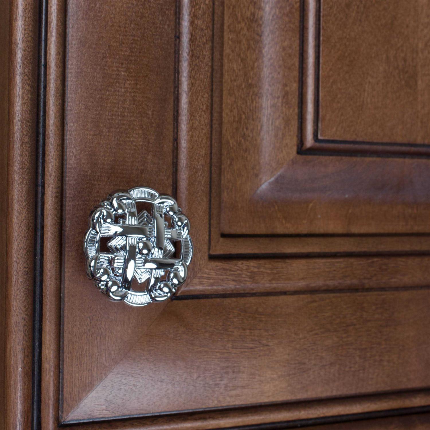 This Celtic medallion cabinet knob from GlideRite Hardware will add an Irish-inspired look to your kitchen or bathroom cabinet drawers. Its medallion design will make your cabinets stand out from the rest due to its unique appearance. Each knob is packaged individually to prevent damage to the finish and comes with necessary hardware for easy installation.