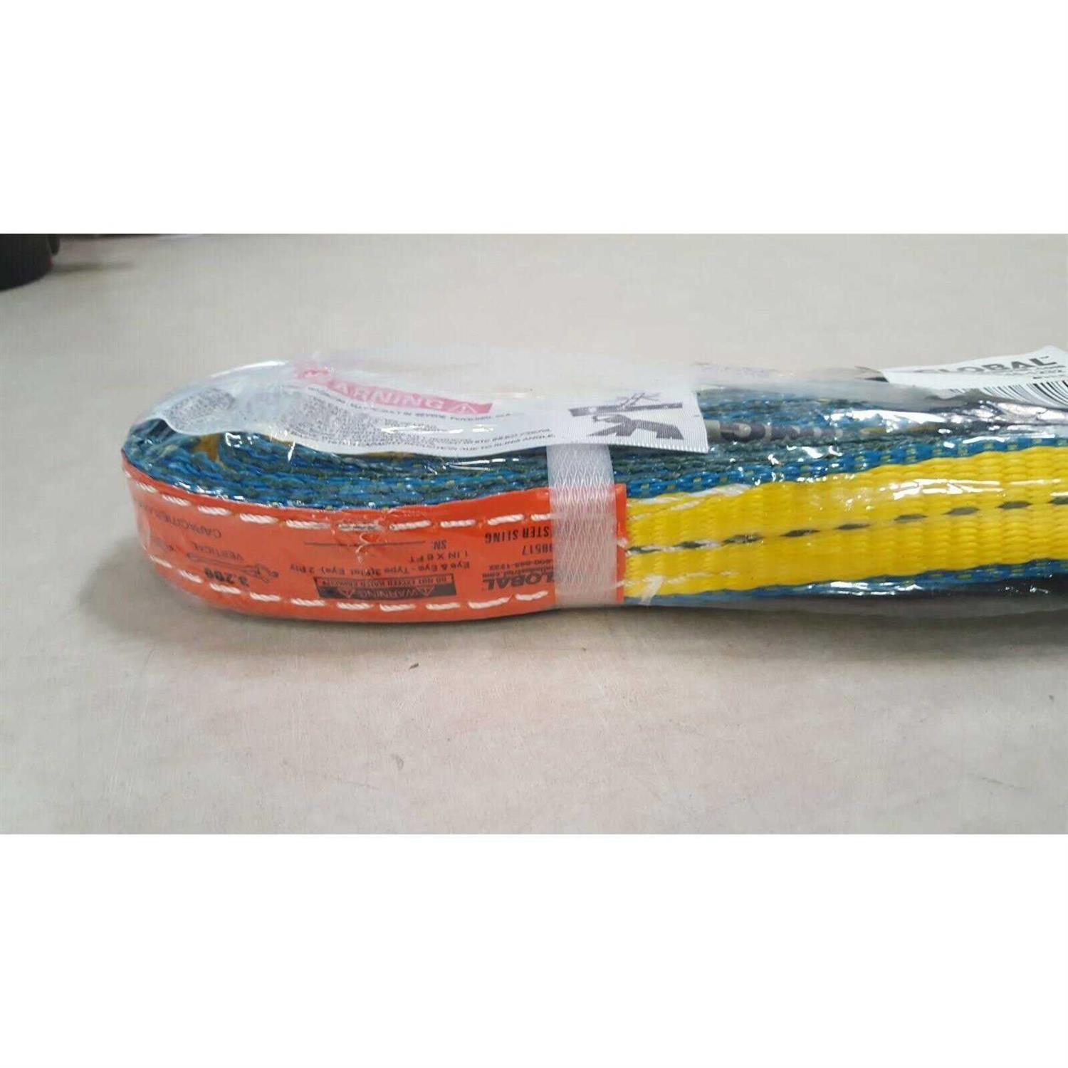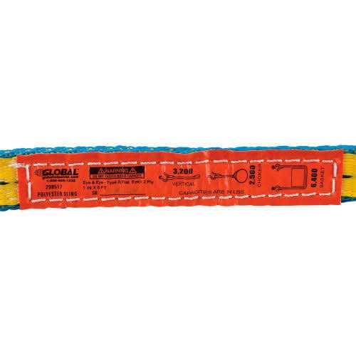 Global Industrial Sling, Eye & Eye, 6 ft L x 1 in W, 3200/2500/6400 lbs Cap