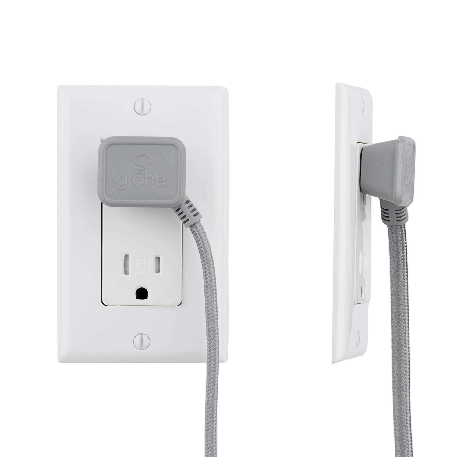 - Right angle plug: furniture can sit flush to the wall with Globe Electric slim space saving right angle plug