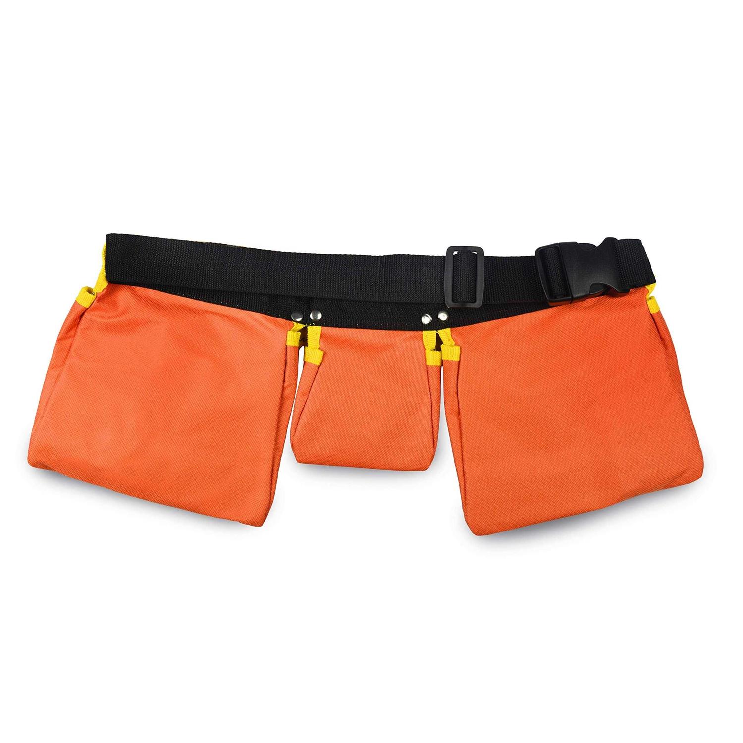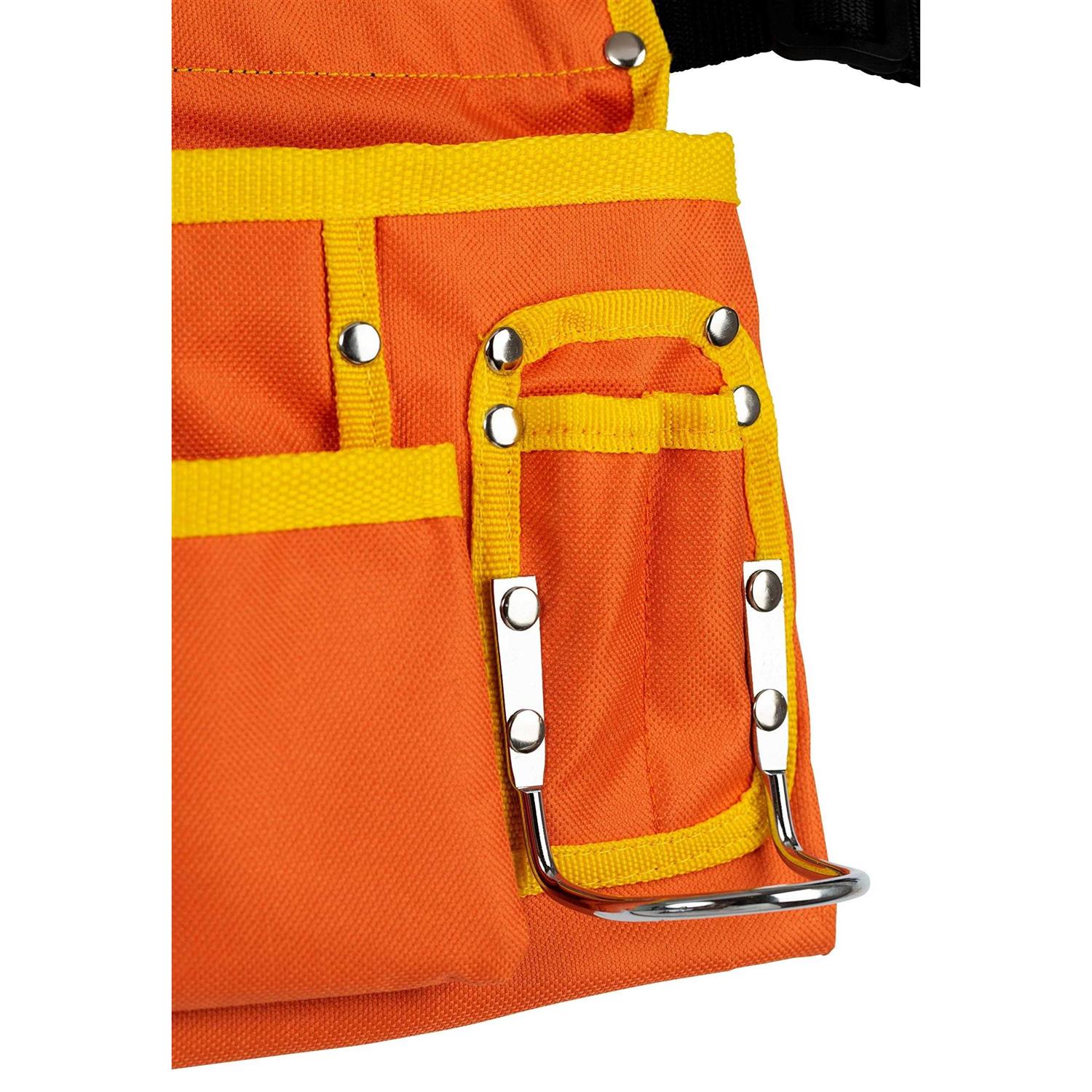 GlossyEnd 11 Pocket Orange 600D Polyester Construction Kids Tool Belt, Work Apron Great for Pretended Play Role, with Adjustable Poly Web Belt Quick