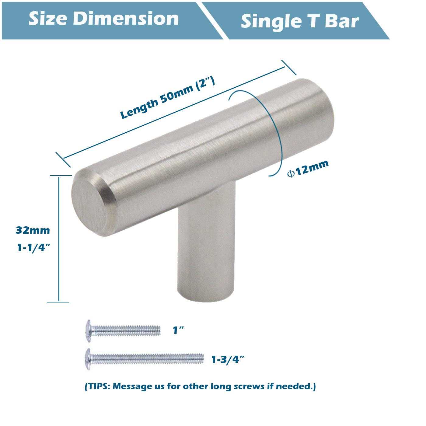 Gobrico Satin Nickel Single T bar Kitchen Cabinet Handles Knobs Stainless Steel Cupboard Drawer Dresser Pulls 50mm